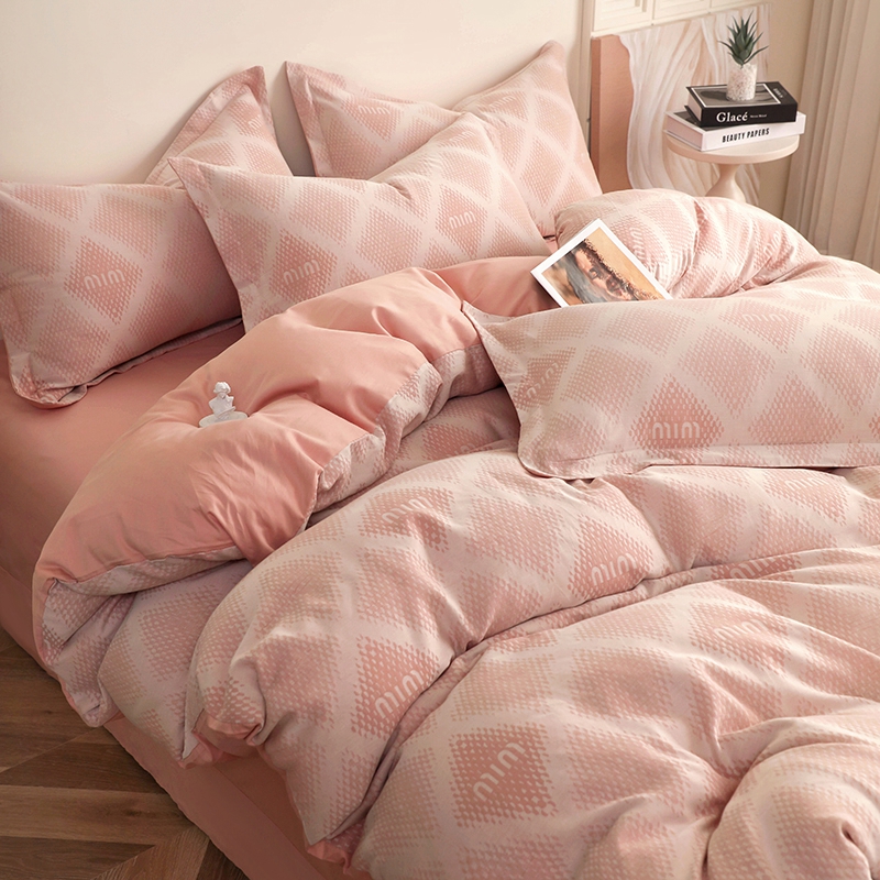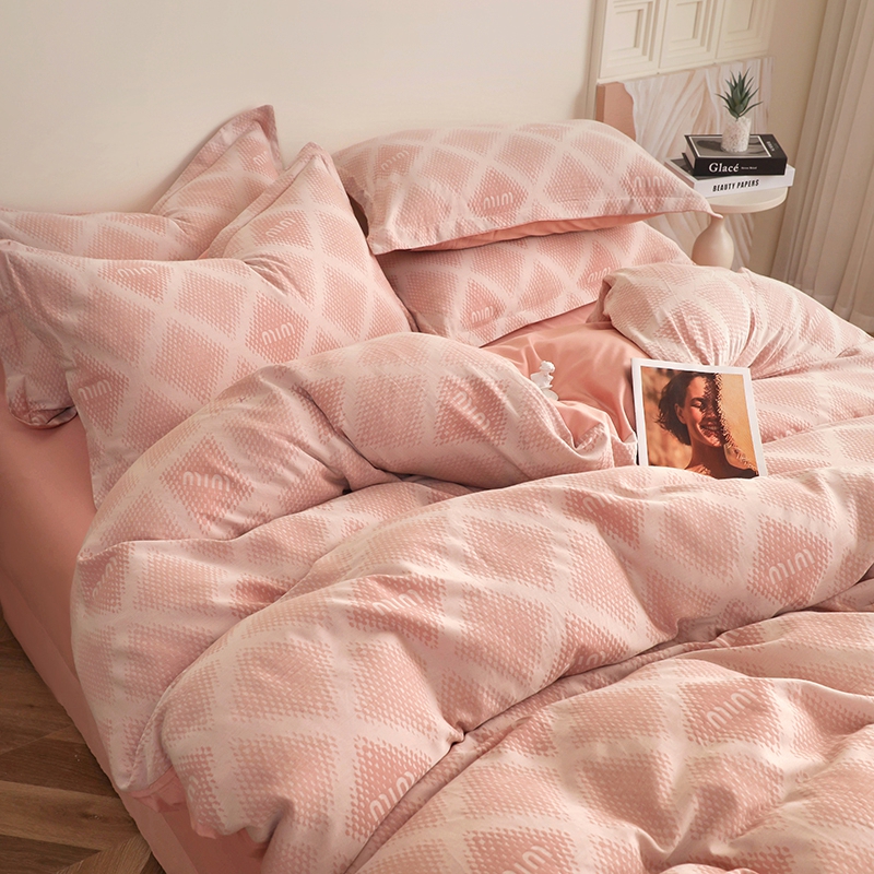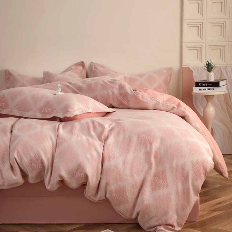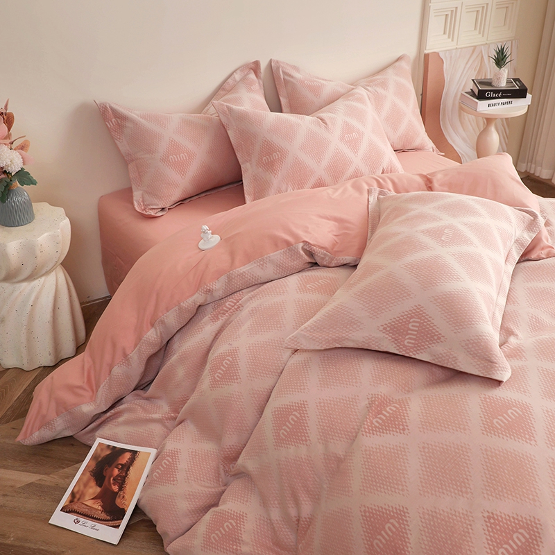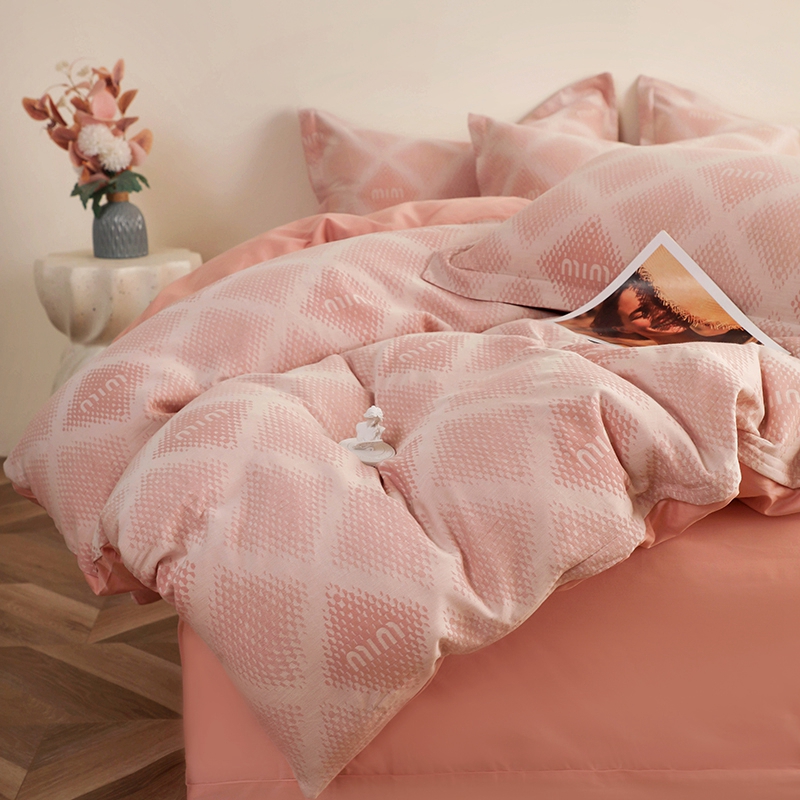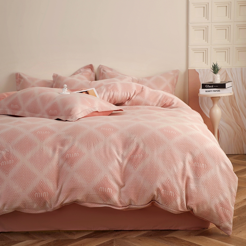 昊川家纺 2025新款全棉双层纱水洗色织大提花四件套 极简-粉