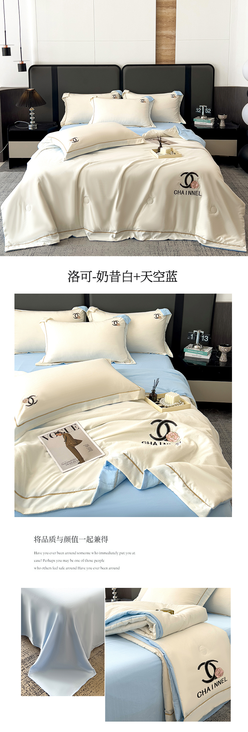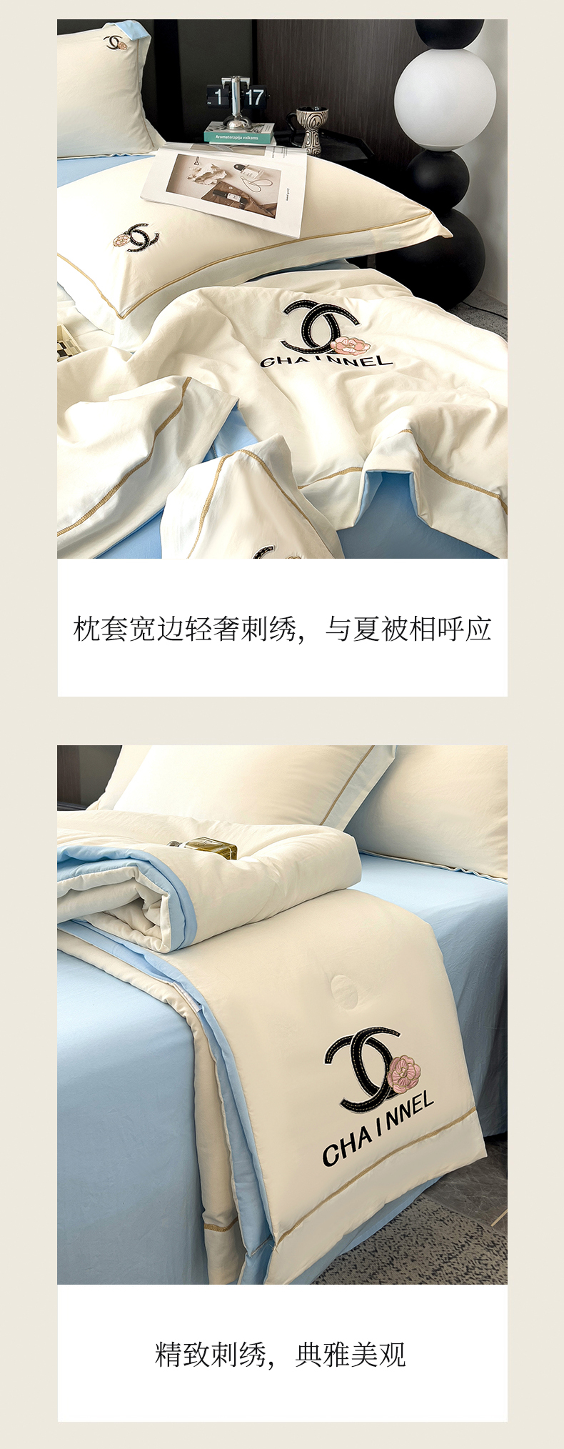 当前位置: 91家纺网 > 商品网购 > 床品套件 > 四件套 > 夏被四件套 > 灰鲸 2025新款轻奢洛可刺绣水洗棉夏被四件套系列 洛可-奶昔白+天空蓝