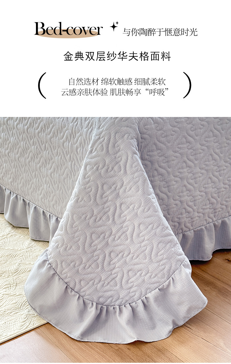 当前位置: 91家纺网 > 商品网购 > 床品套件 > 三件套 > 花香四季家纺 2025新款泡芙小姐双层纱华夫格柔棉夹棉绗缝床盖床垫子单件三件套 泡芙小姐-灰