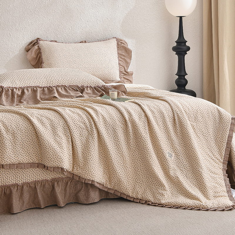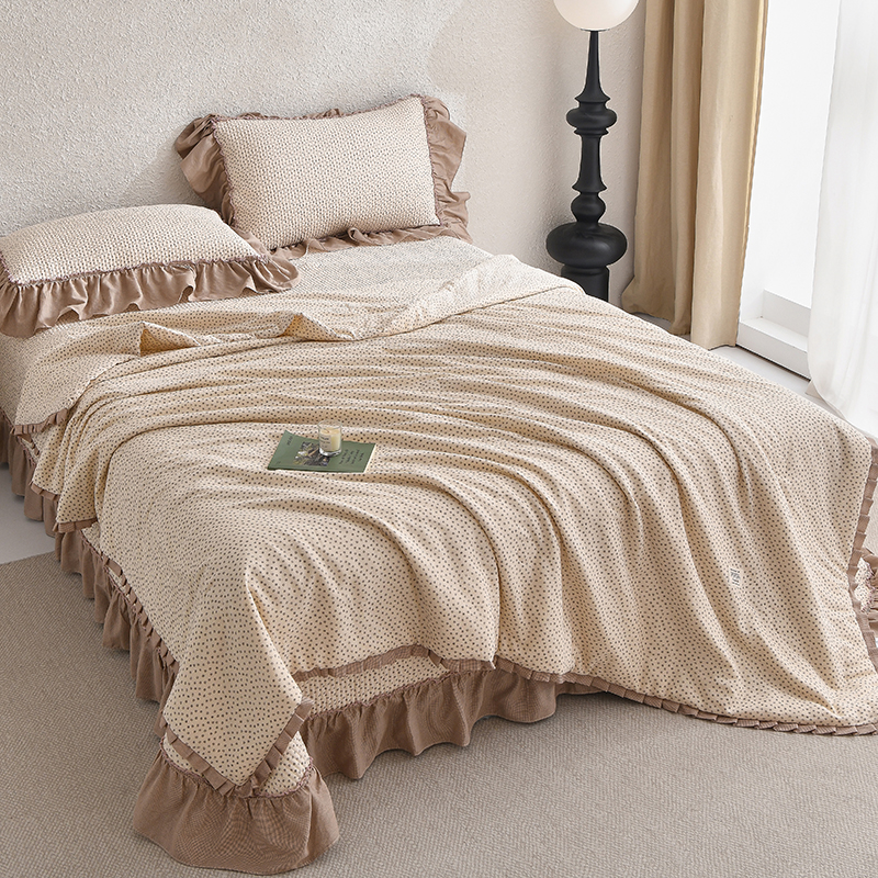 商品名称:有货 2025春夏新款全棉纯棉双层纱夏被夏凉被空调被+床盖三件套 映雪