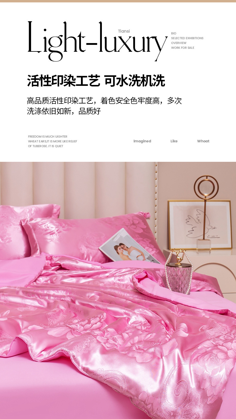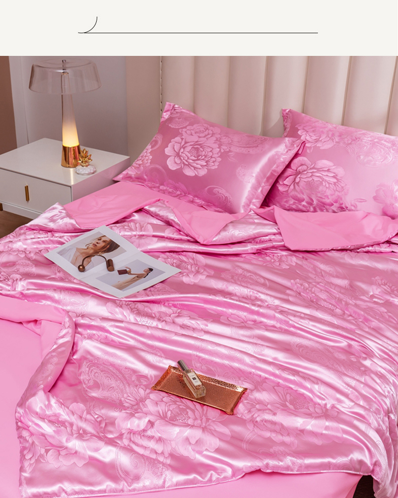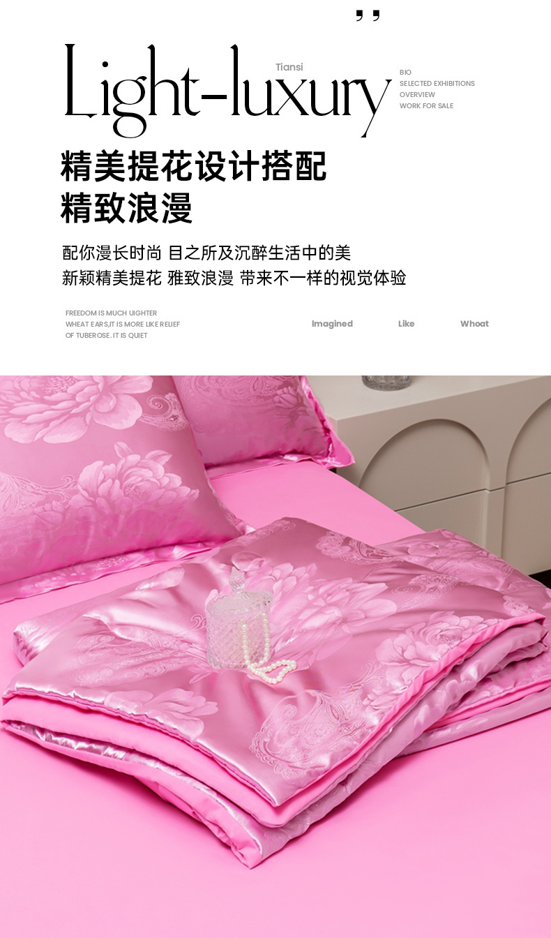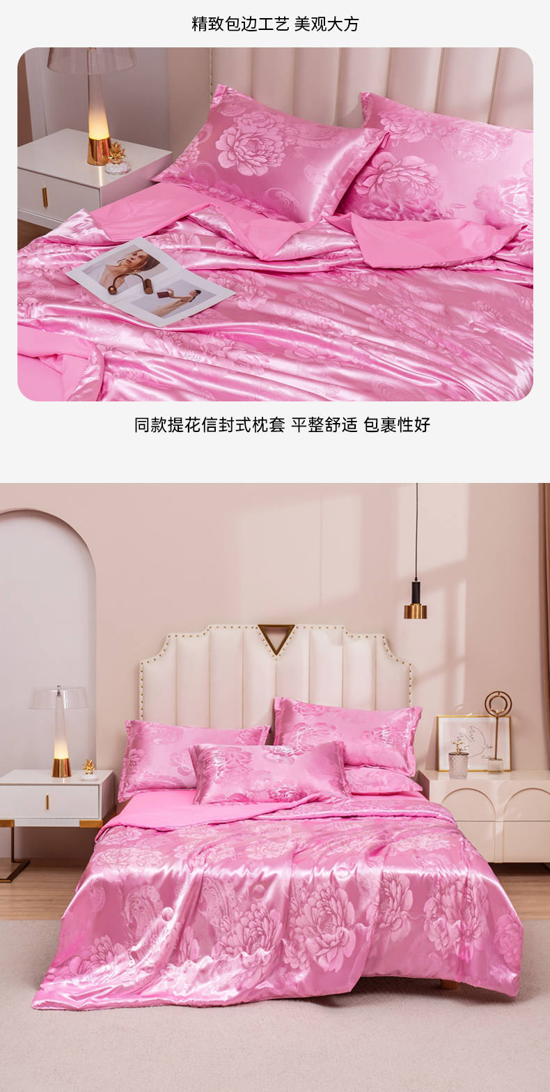 (总)莱欧纳家纺 2025新款提花夏被四件套,豆沙,灰色,香槟,紫色