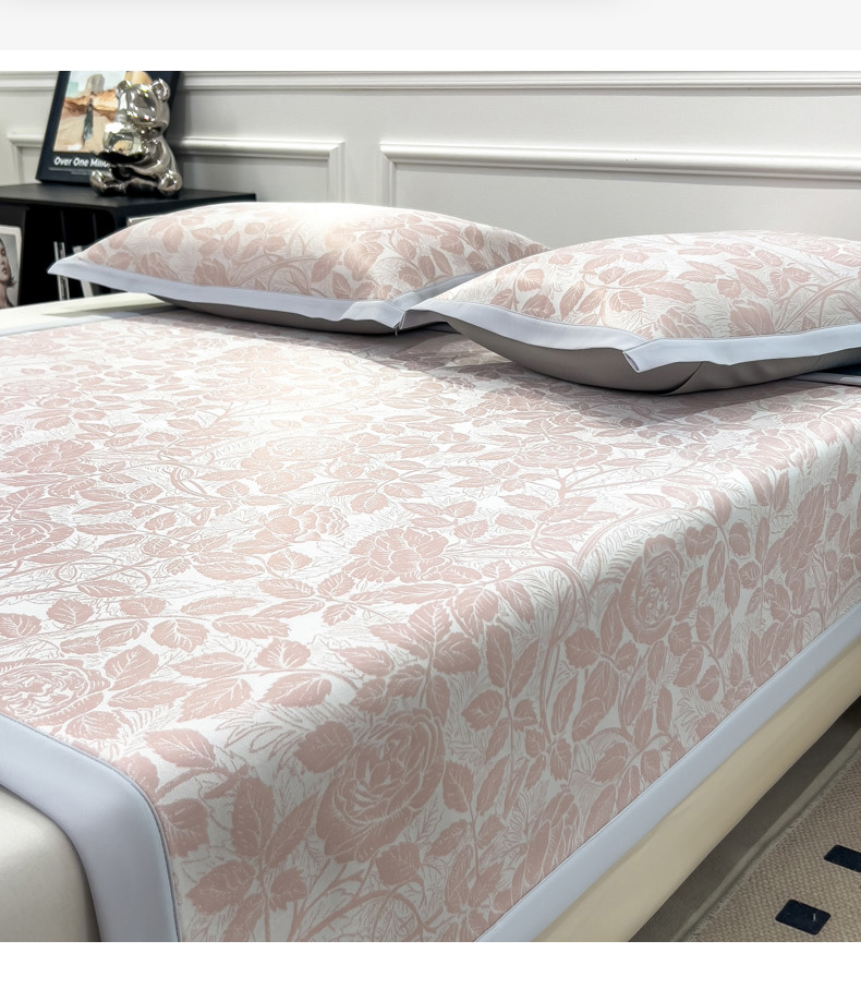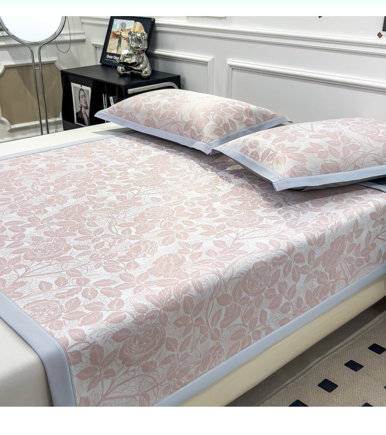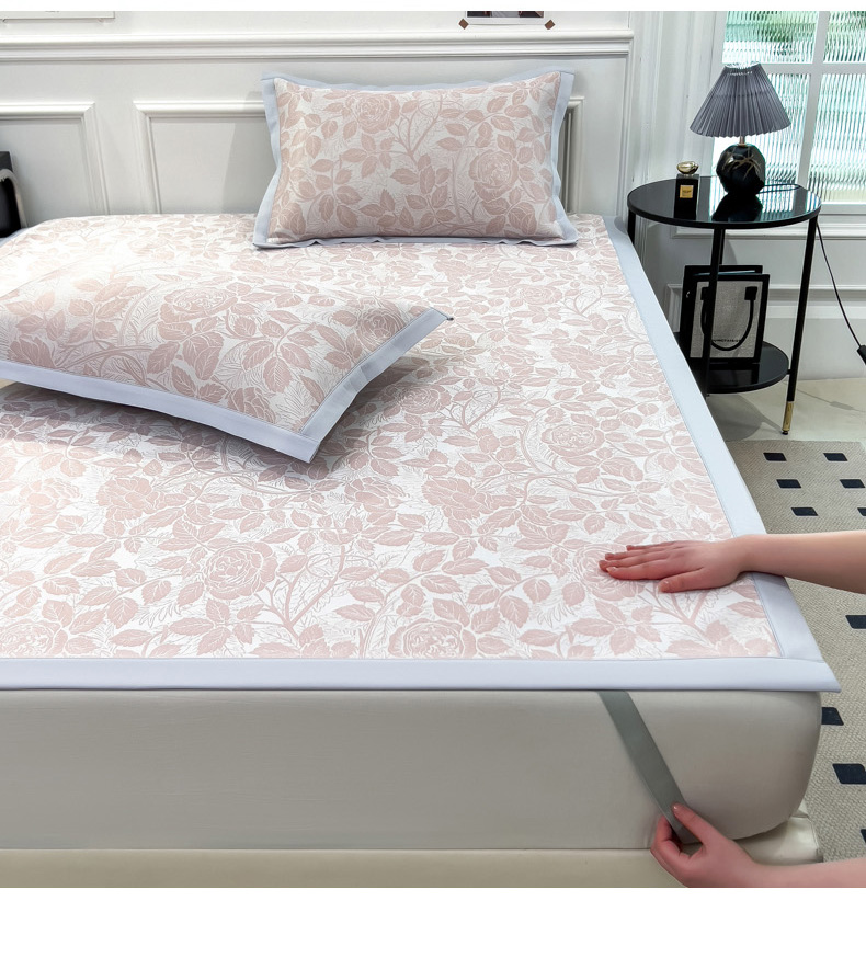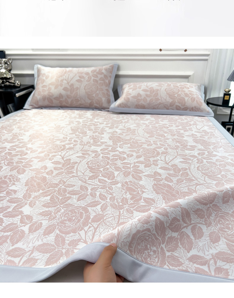 2025新款牛奶丝提花凉感凉席系列床席款 情意浓粉床席款