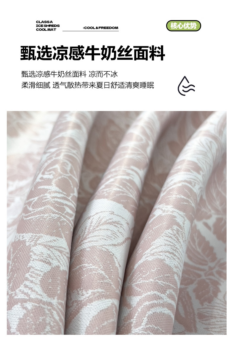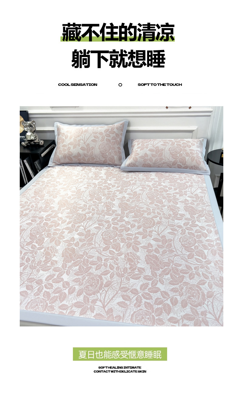 商品名称:2025新款牛奶丝提花凉感凉席系列床席款 情意浓粉床席款
