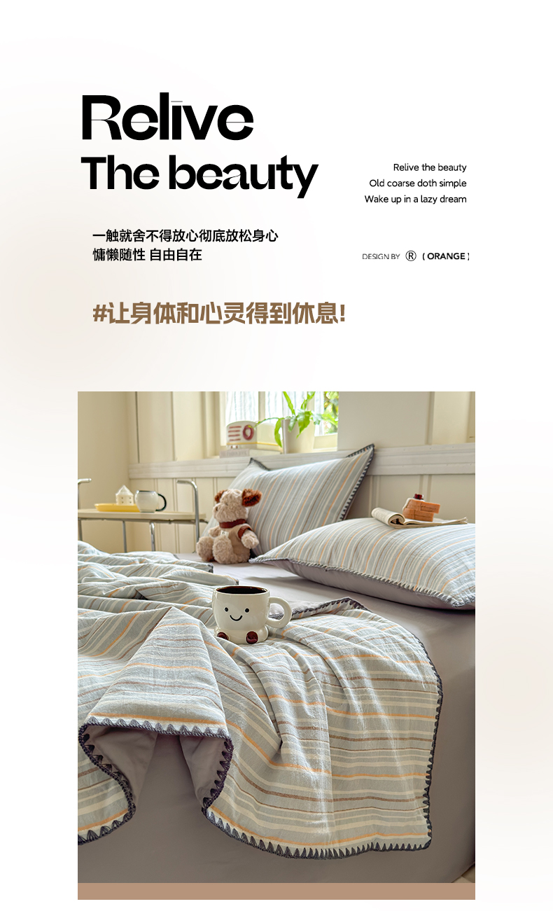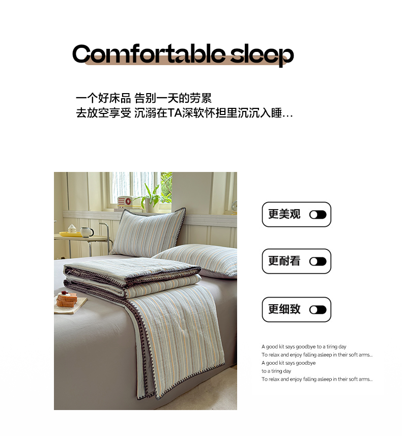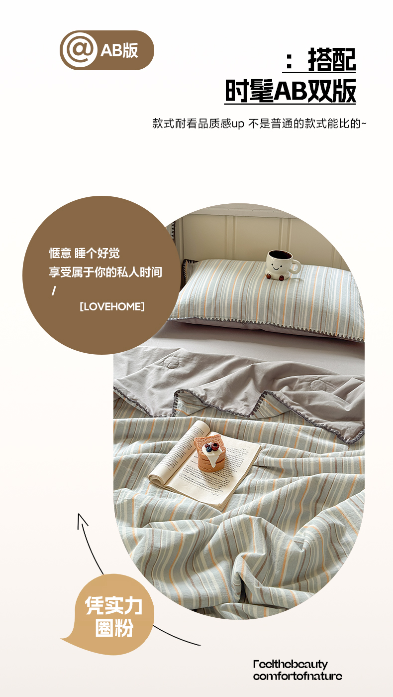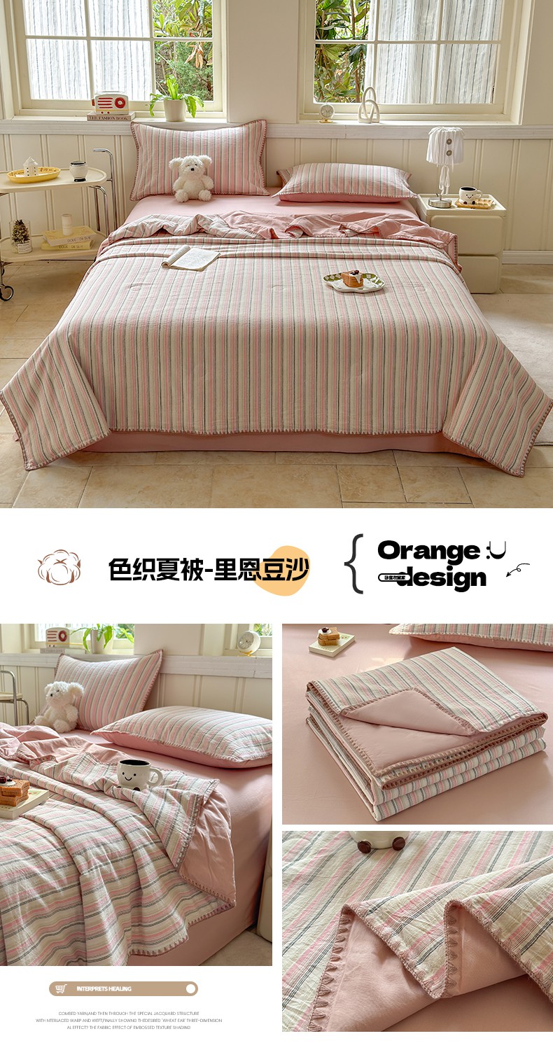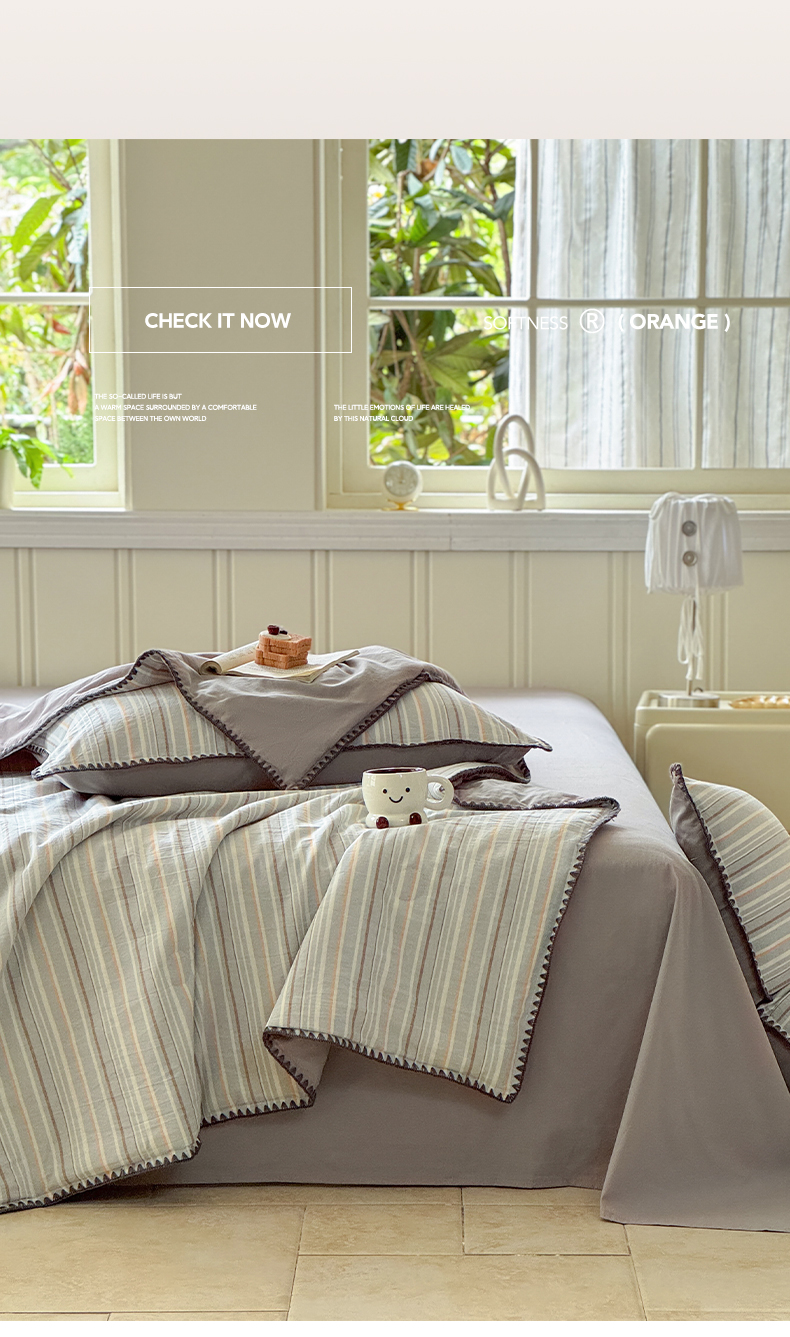 当前位置: 91家纺网 > 商品网购 > 床品套件 > 四件套 > 夏被四件套 > 莱登卡奴 2025新款A类全棉色织水洗棉大豆夏被四件套系列 色织夏被-静谧浅灰