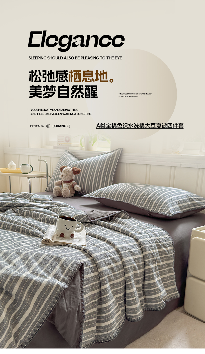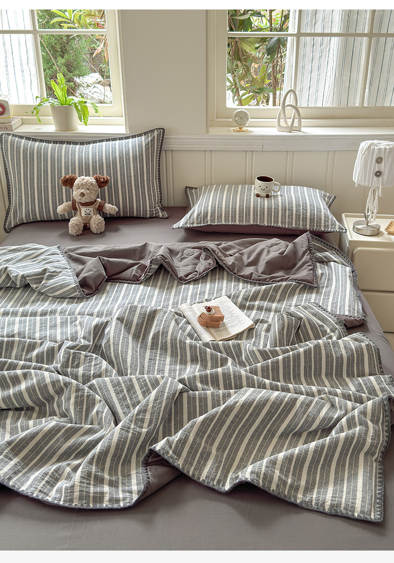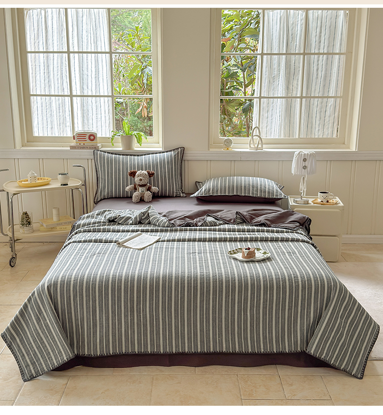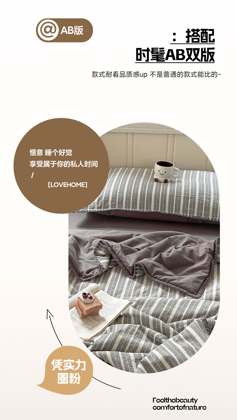 当前位置: 91家纺网 > 商品网购 > 床品套件 > 四件套 > 夏被四件套 > 莱登卡奴 2025新款A类全棉色织水洗棉大豆夏被四件套系列 色织夏被-雅诗深灰