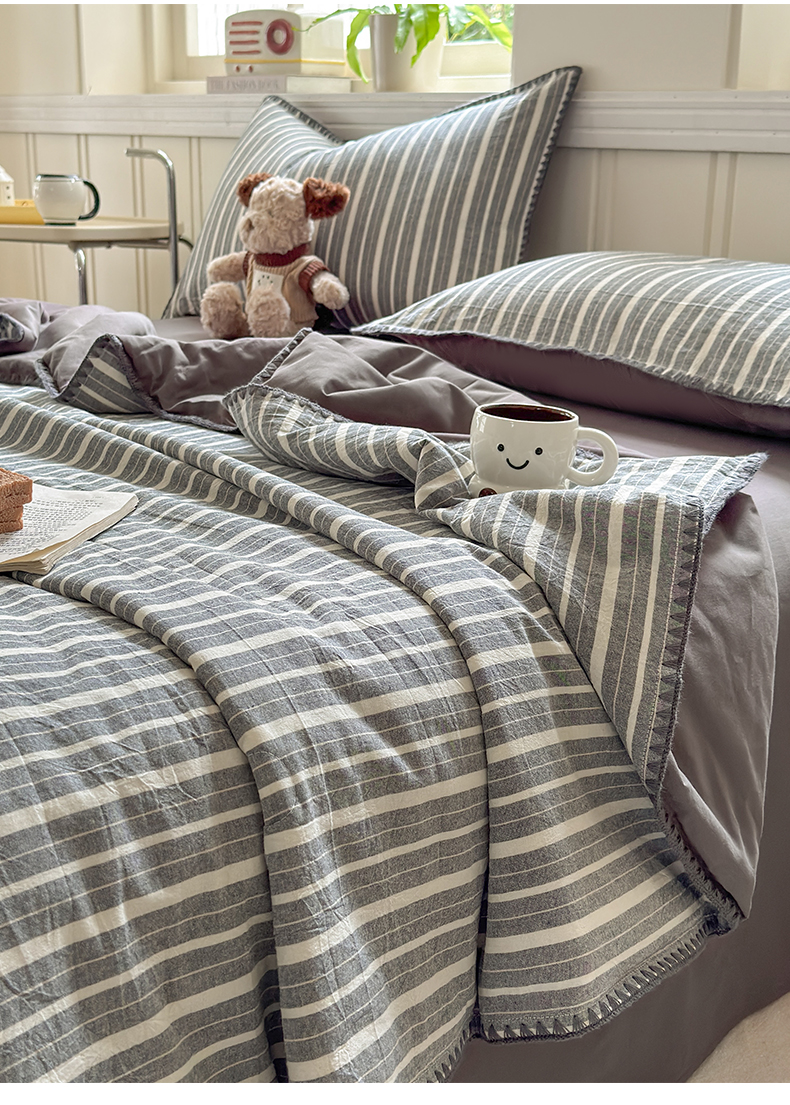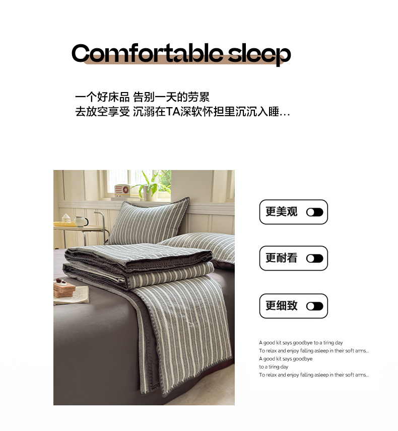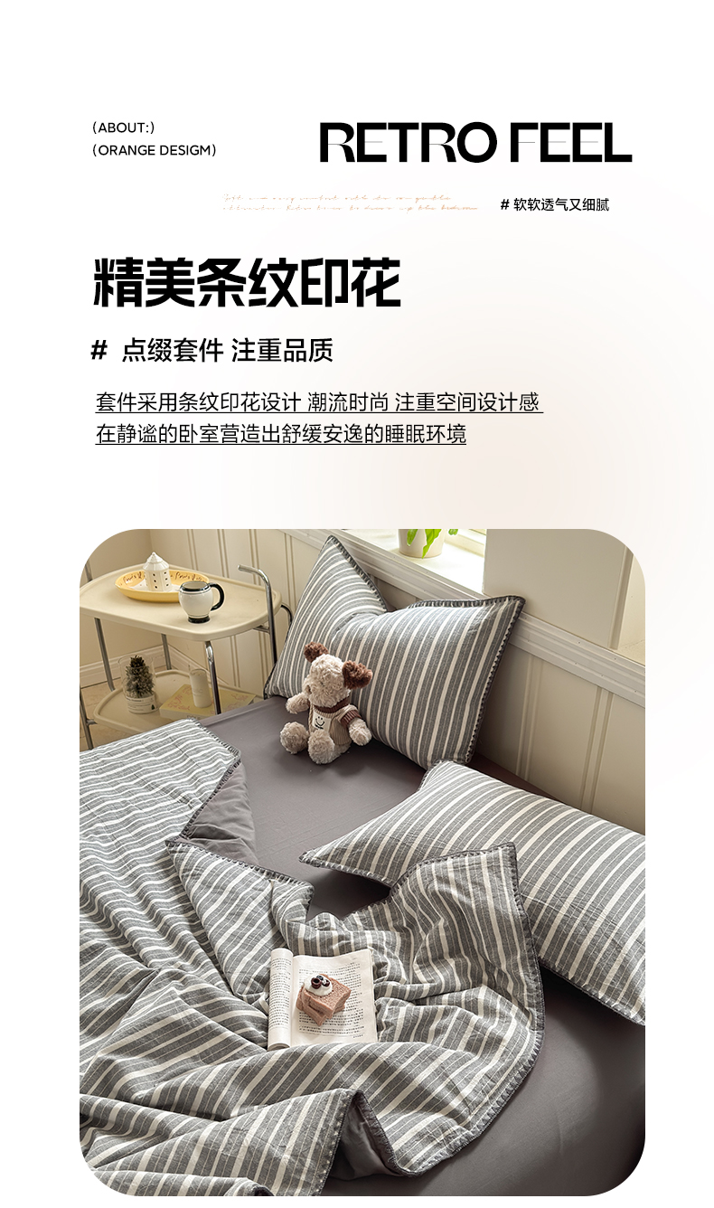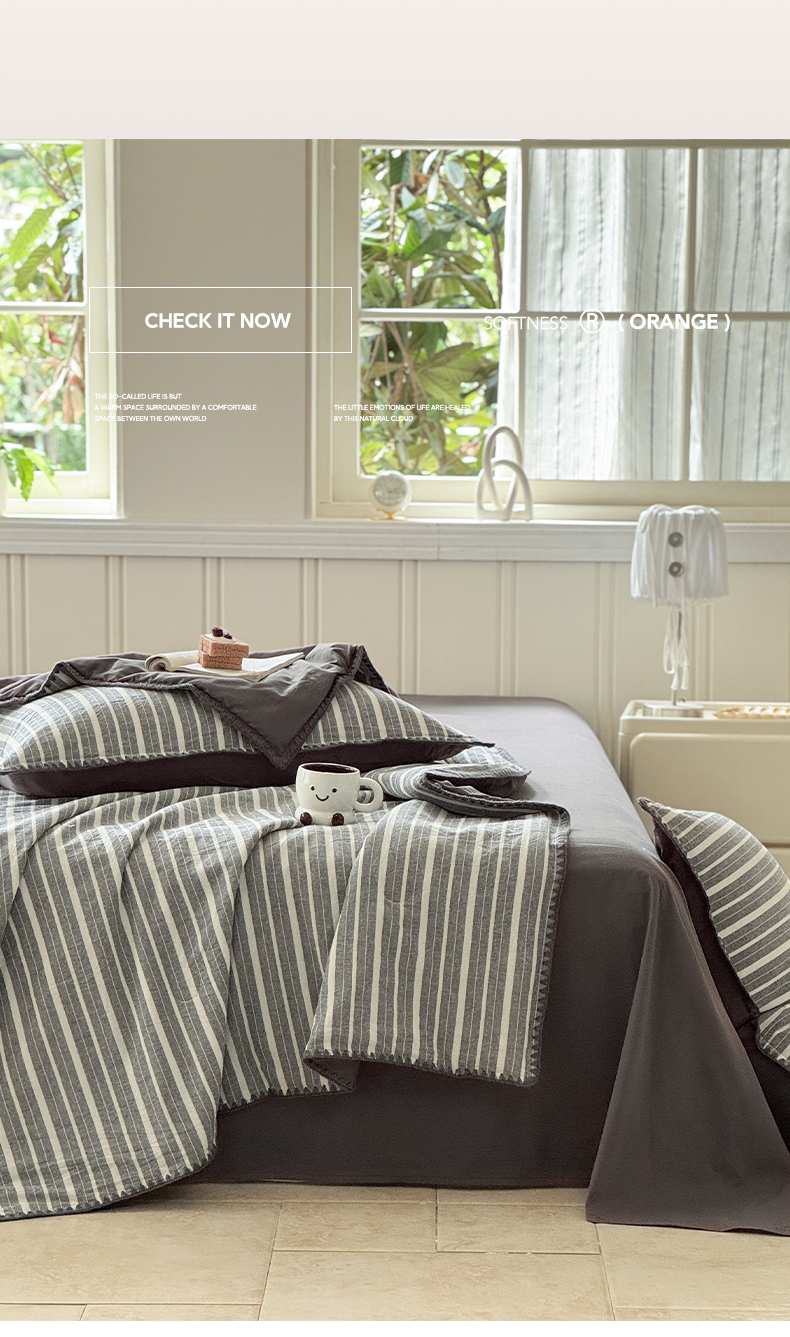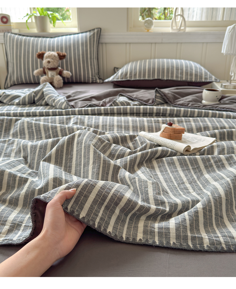 当前位置: 91家纺网 > 商品网购 > 床品套件 > 四件套 > 夏被四件套 > 莱登卡奴 2025新款A类全棉色织水洗棉大豆夏被四件套系列 色织夏被-雅诗深灰