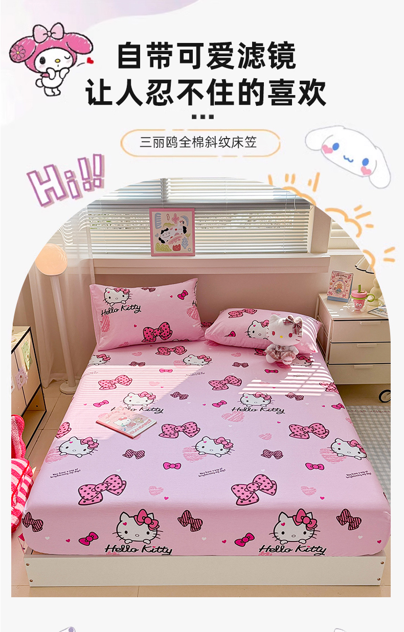 呗旺鹿 2025新款正版三丽鸥全棉13372单品床笠 童趣美乐蒂