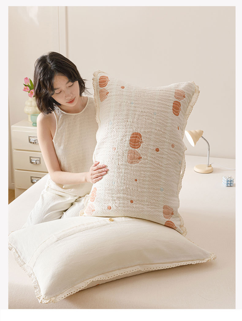 (总)麻依 2025新款棉花糖枕巾全棉四层纱布双层花边,抱抱熊,点点-灰,点点-米白,花影-粉,花影-米白,墨心,奶油草莓,帕帕熊,牵手小熊,生日腊肠狗,甜甜圈小熊,小蝴蝶结,小南瓜,小柿子,樱桃香