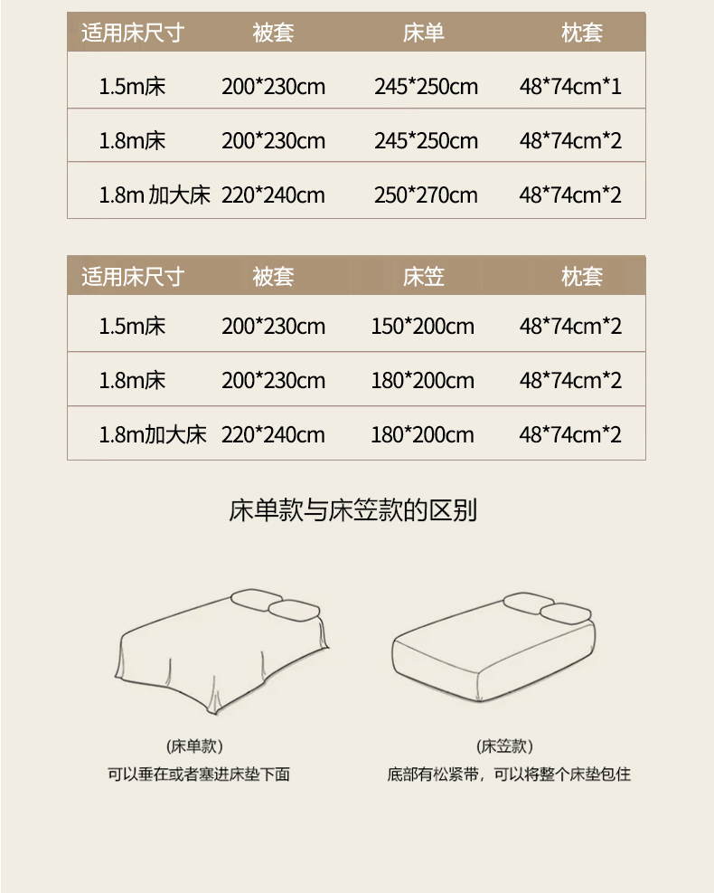 被套200*230 床笠180*200 枕套48*74*1 | ¥260.00 |