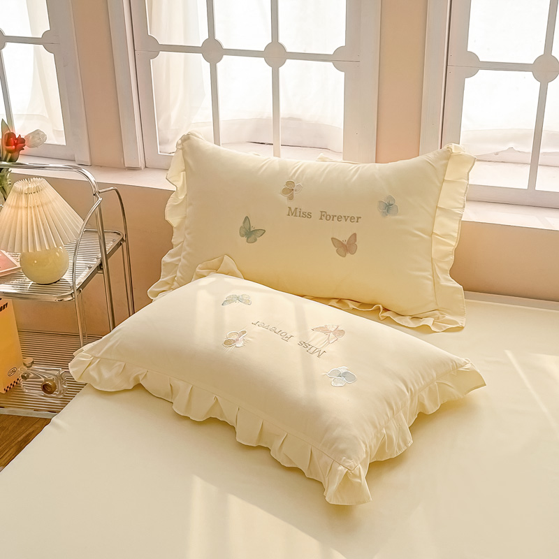 恋之语 2025新款水洗棉刺绣花边四件套-蝶羽 蝶羽-黄