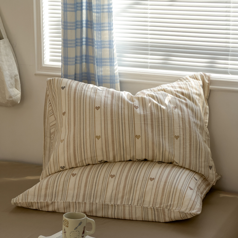 塔塔家居 2025新款全棉纯棉双层纱枕套单品单枕套枕套单件 摩卡