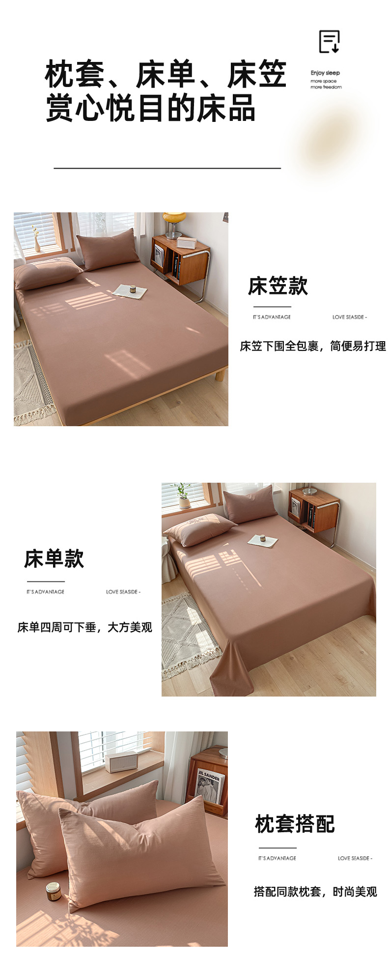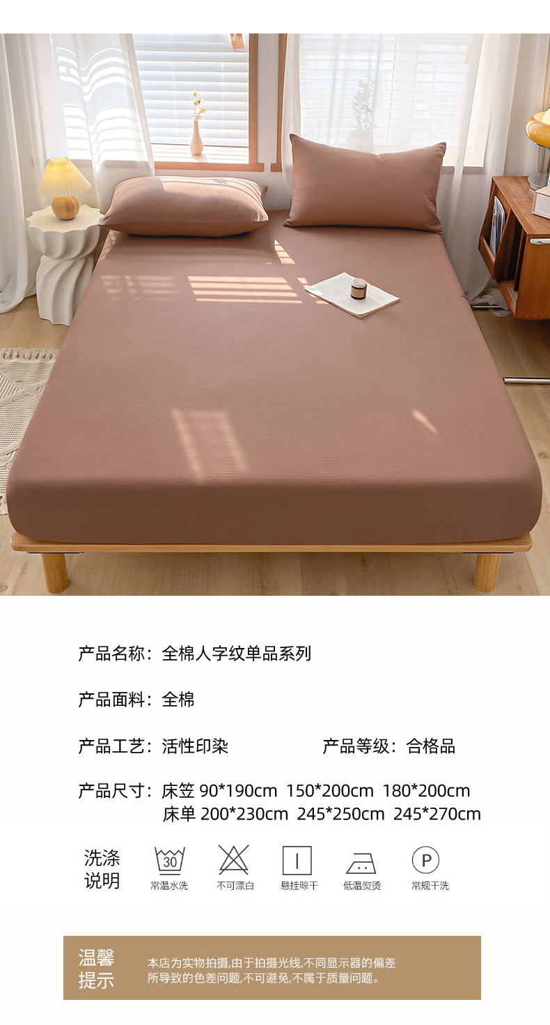 耀悦家纺 2025新款A类人字纹提花水洗棉单品系列-单床单 人字纹-焦糖