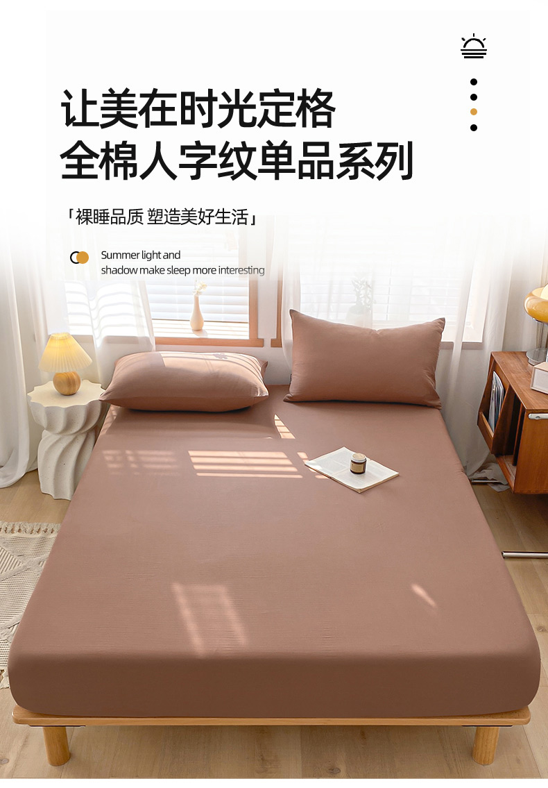 耀悦家纺 2025新款A类人字纹提花水洗棉单品系列-单床笠 人字纹-焦糖
