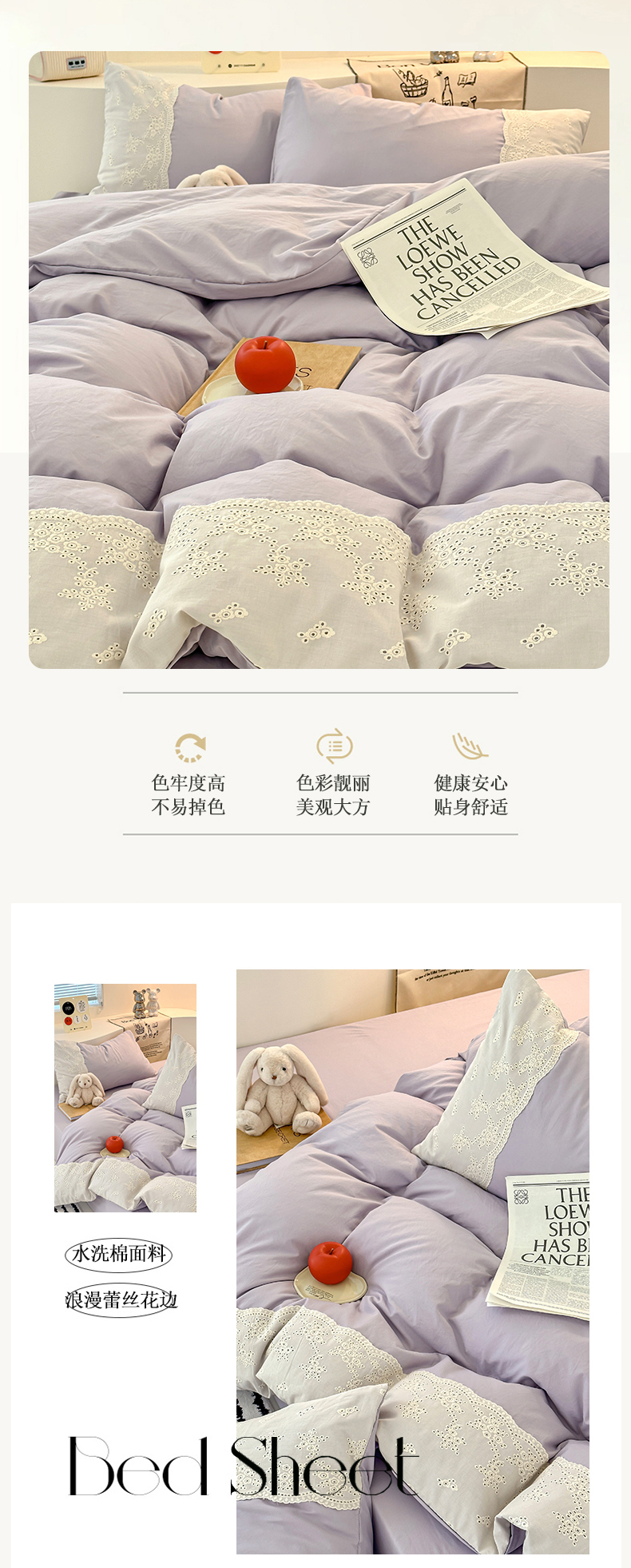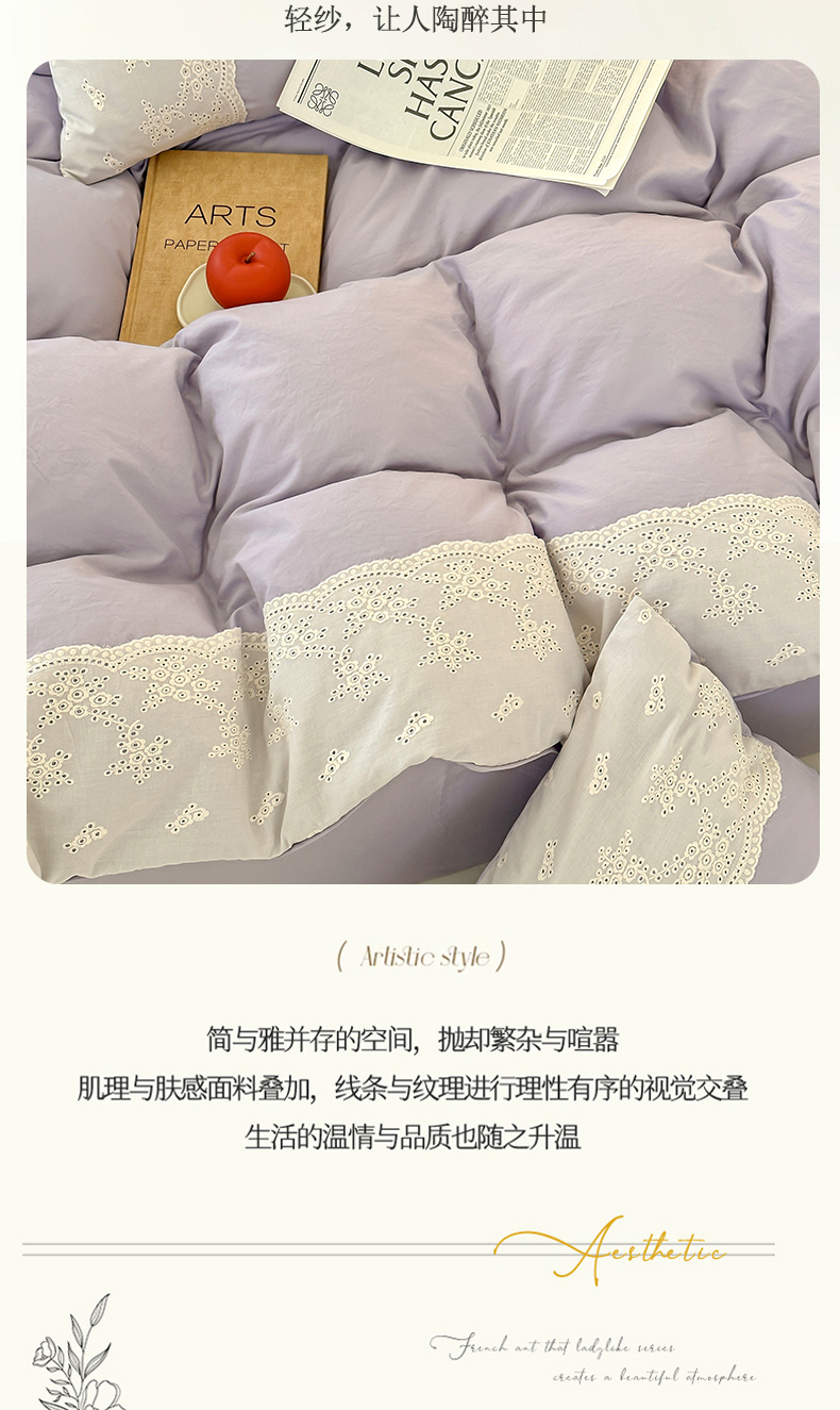 凯洛奇 2025新款1法式小清新蕾丝花边水洗棉四件套-风格一【提供买家秀】 蕾丝花边-薰衣草紫