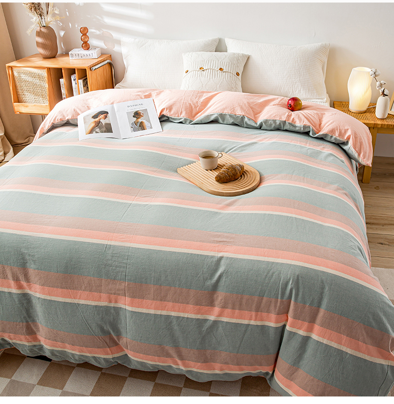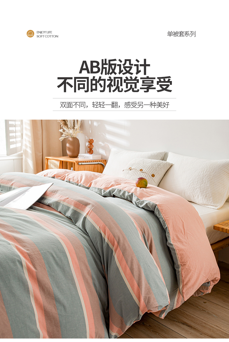 2025新款A类色织水洗棉单被套 嫩绿卡其条