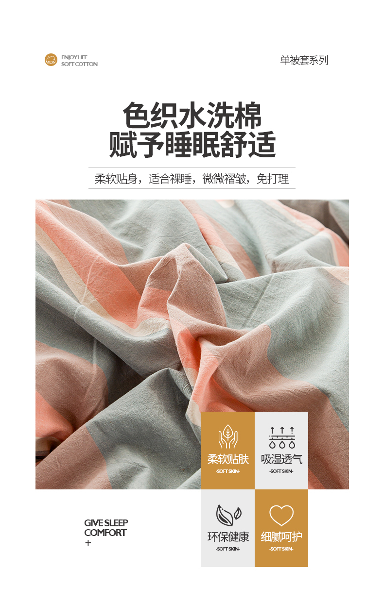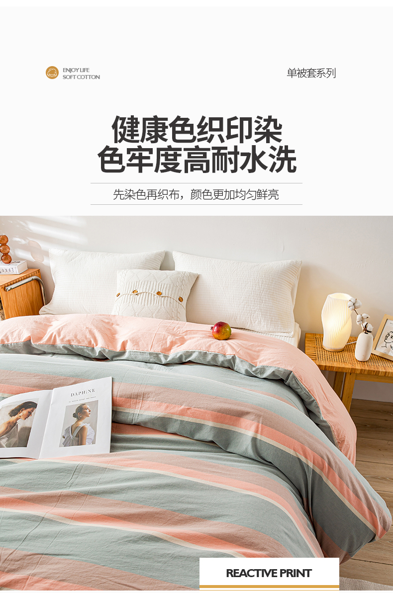 商品名称:2025新款A类色织水洗棉单被套 嫩绿卡其条
