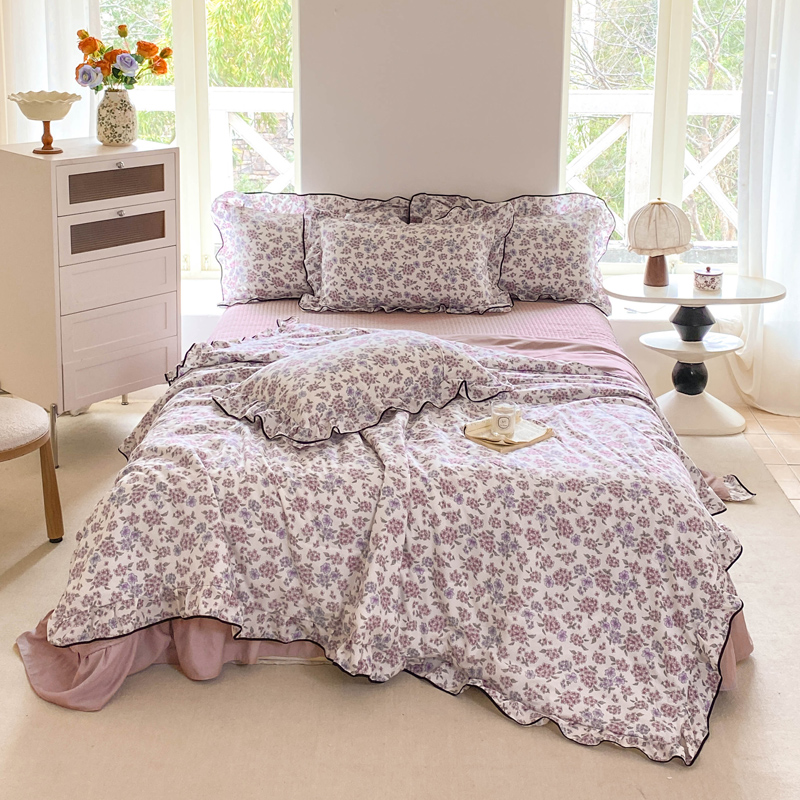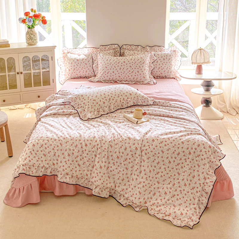 (总)仟网汇 2025新款赫本针织双层纱夏被夏凉被空调被床盖四件套单夏被单床盖单品
