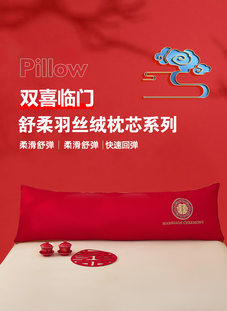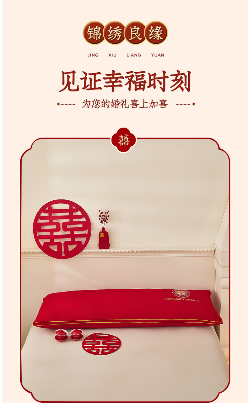 商品名称:三盛源 2025新款舒适亲肤长枕头枕芯 48*150cm长枕芯花样三喜/只