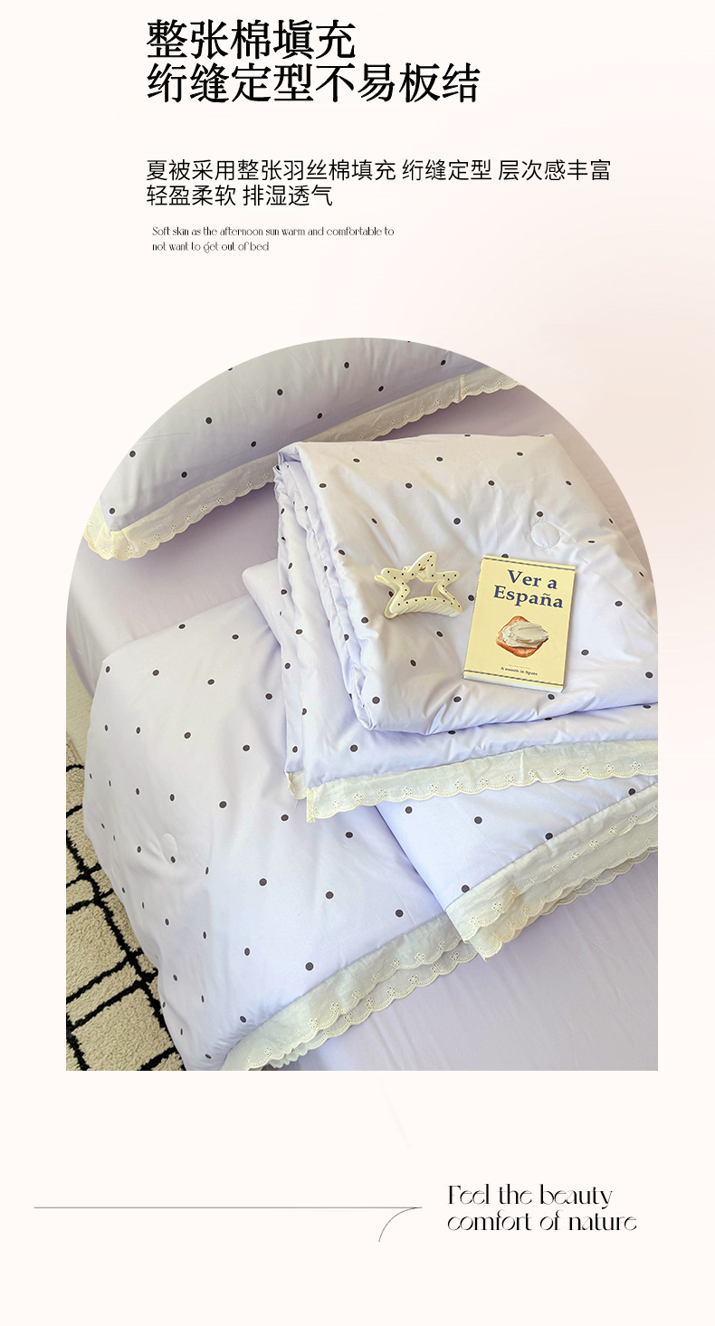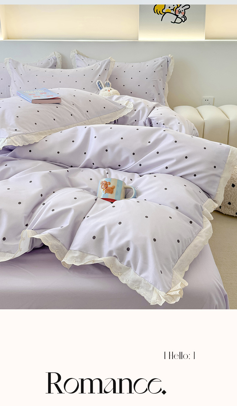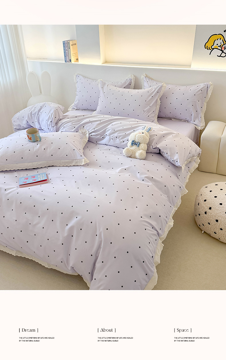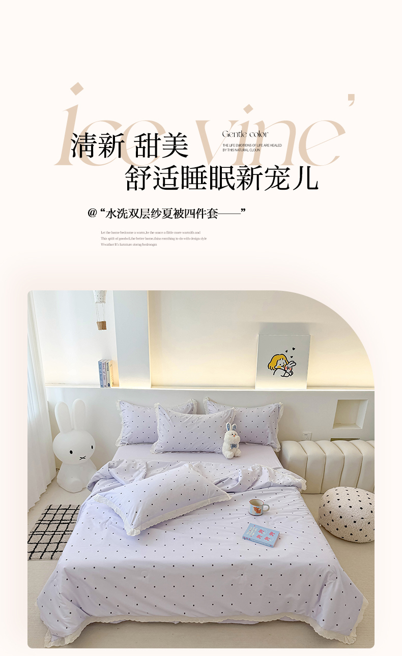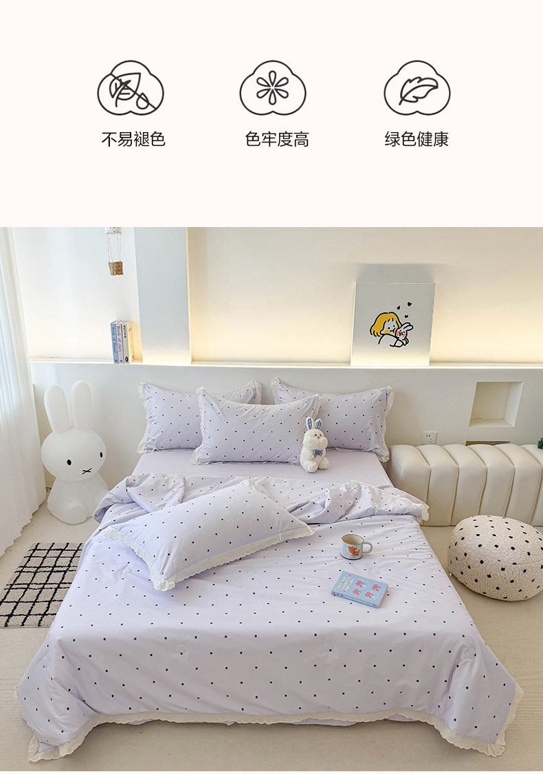 商品名称:吾欢心 2025新款水洗双层纱夏被四件套 紫色波点