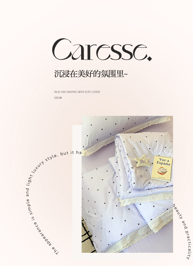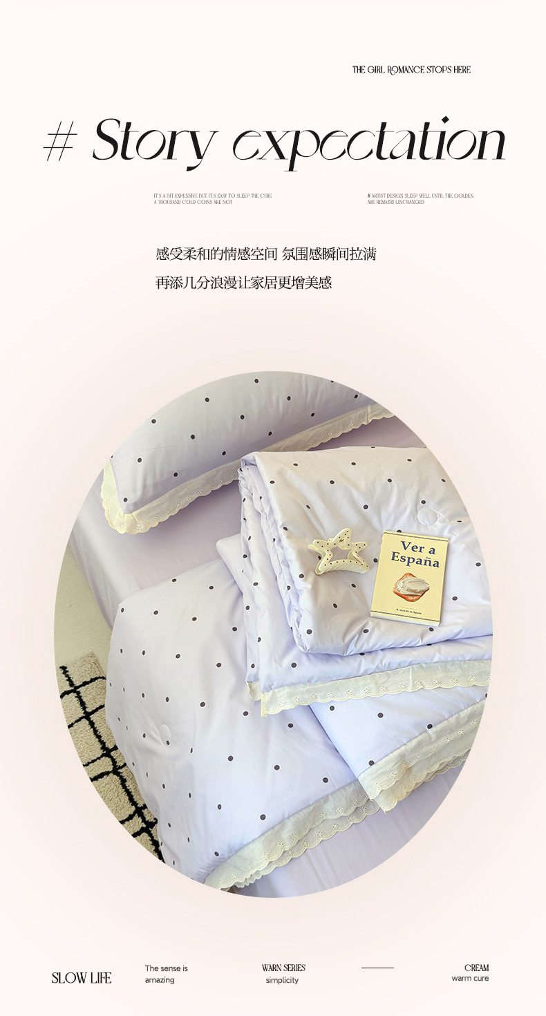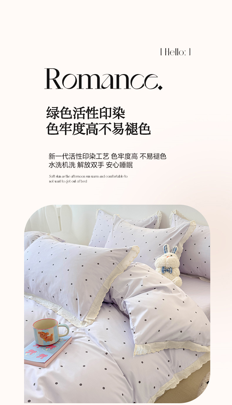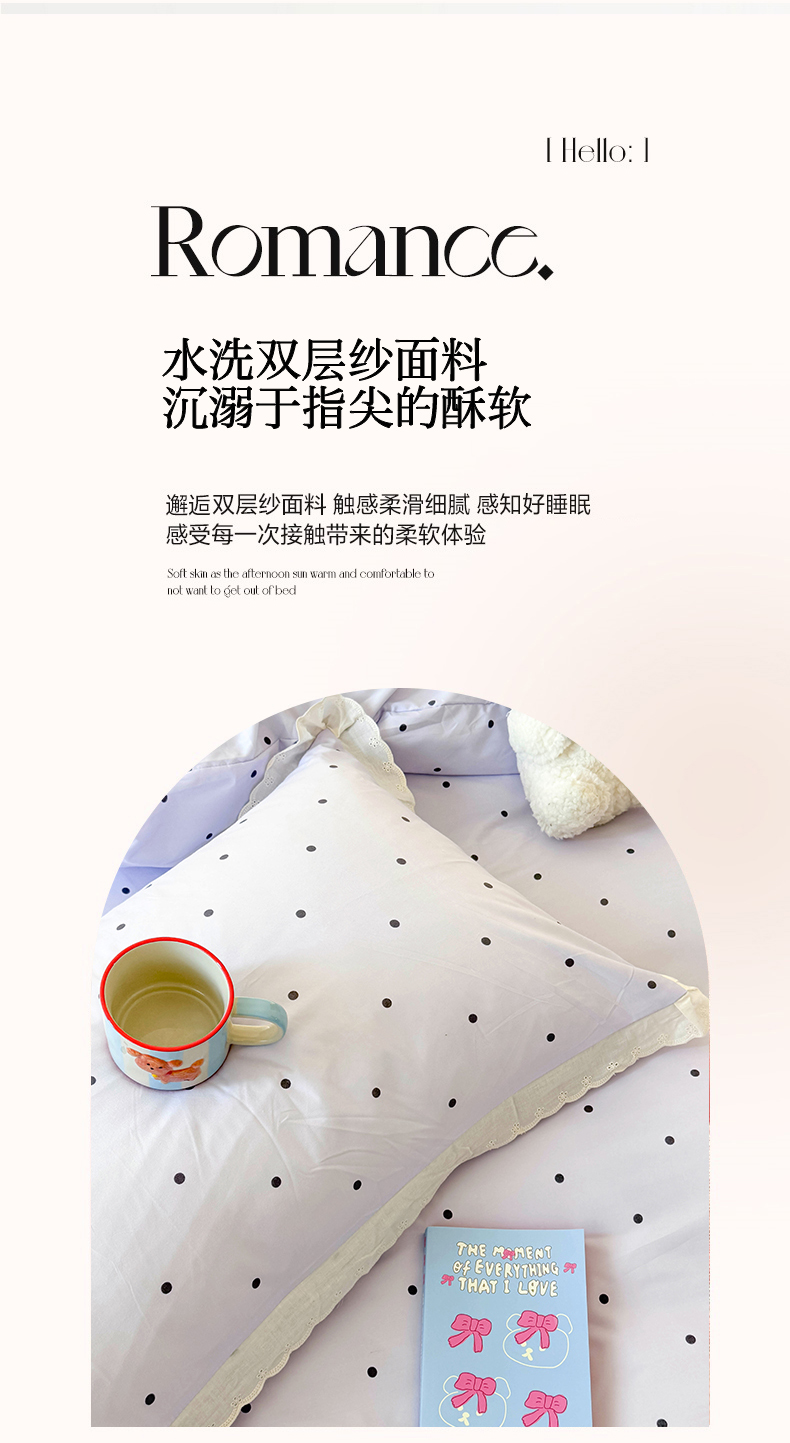 商品名称:吾欢心 2025新款水洗双层纱夏被四件套 紫色波点