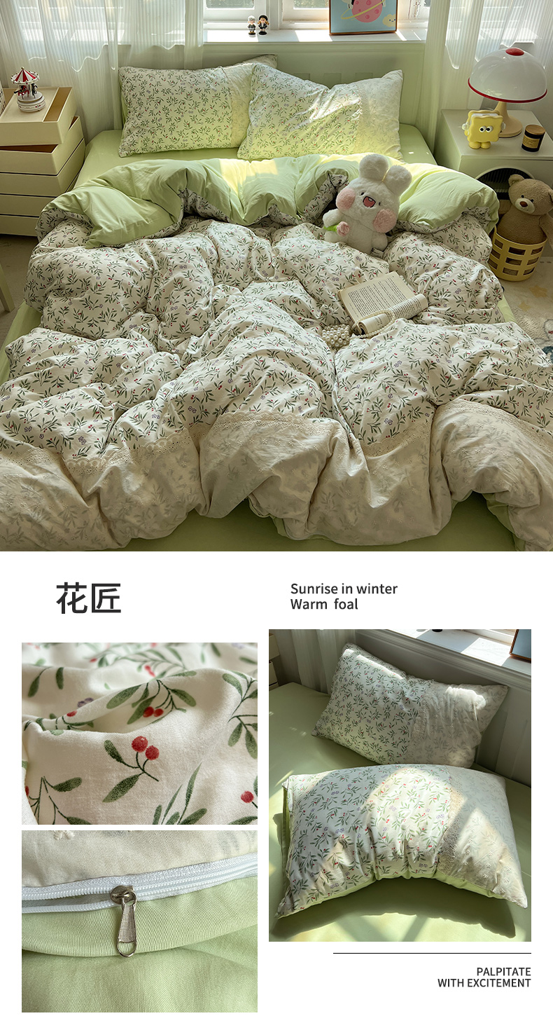 (总)韩都家居 2025新款法式花边印花牛奶绒四件套,茶花,豹纹咖,画蝶,加州风情,洛莉,陌离,南瓜,岁月留声,忘忧,艺境