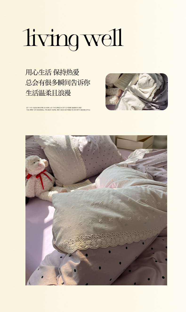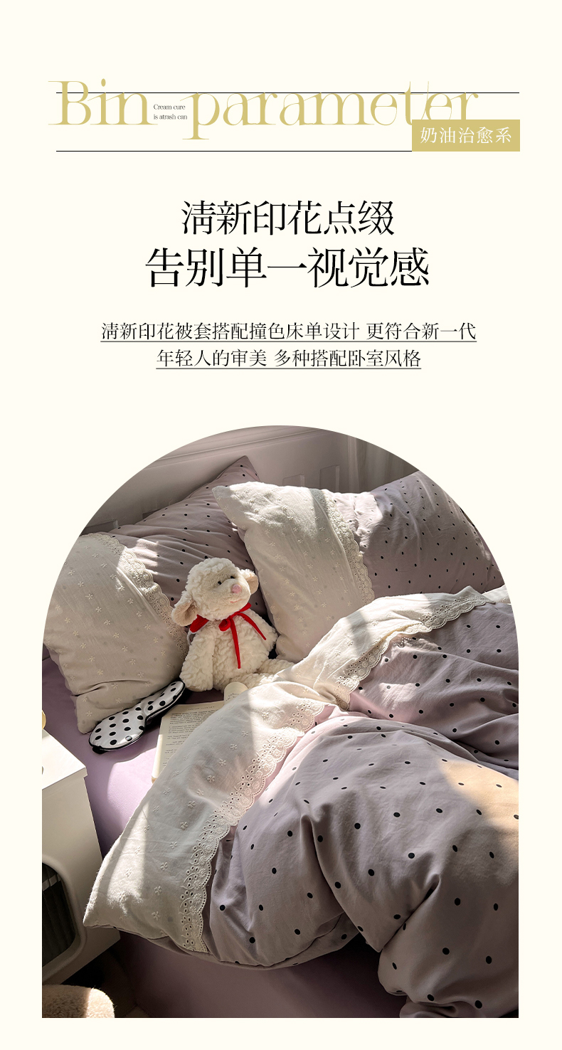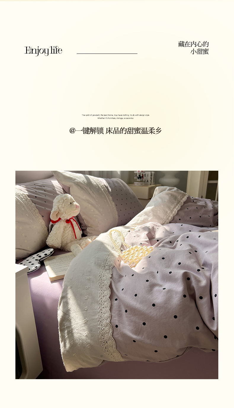商品名称:韩都家居 2025春夏新款蕾丝花边云感双层纱四件套 治愈