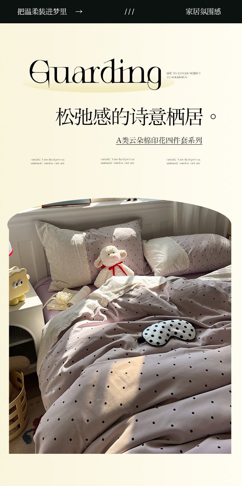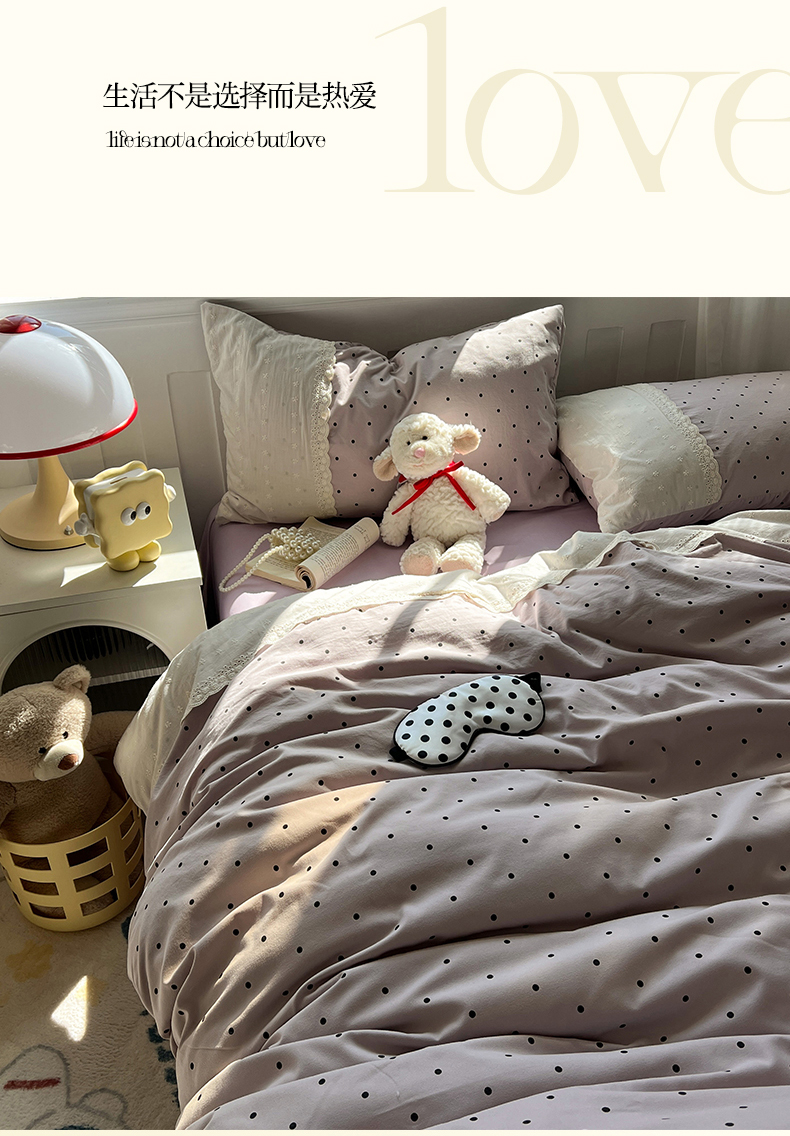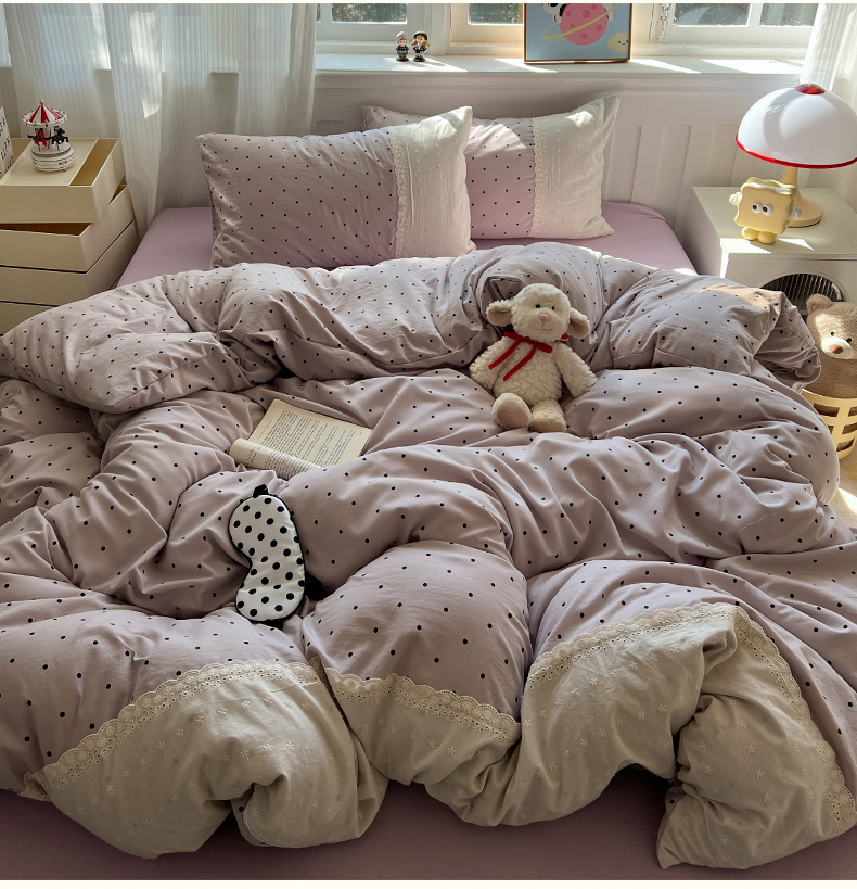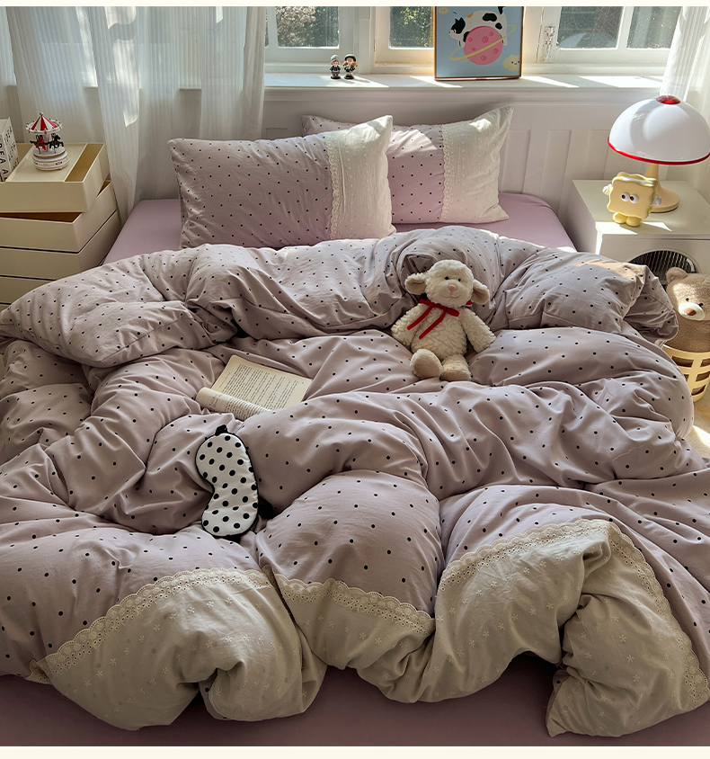 商品名称:韩都家居 2025春夏新款蕾丝花边云感双层纱四件套 治愈