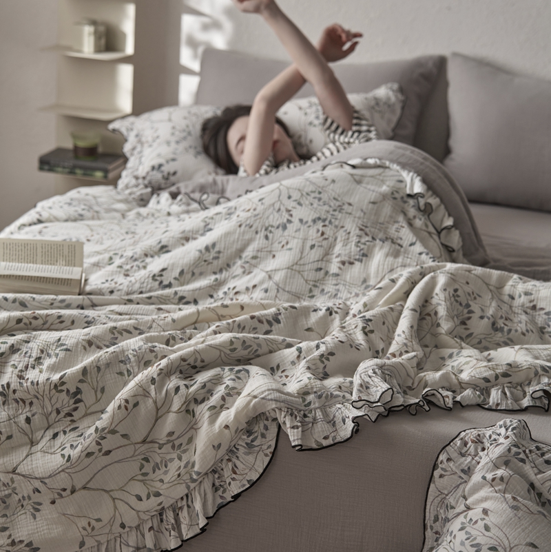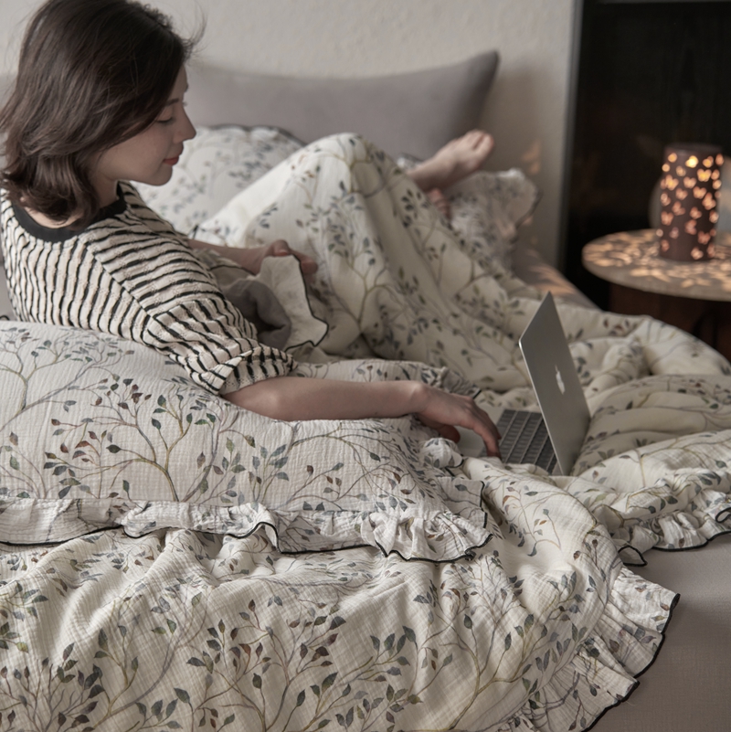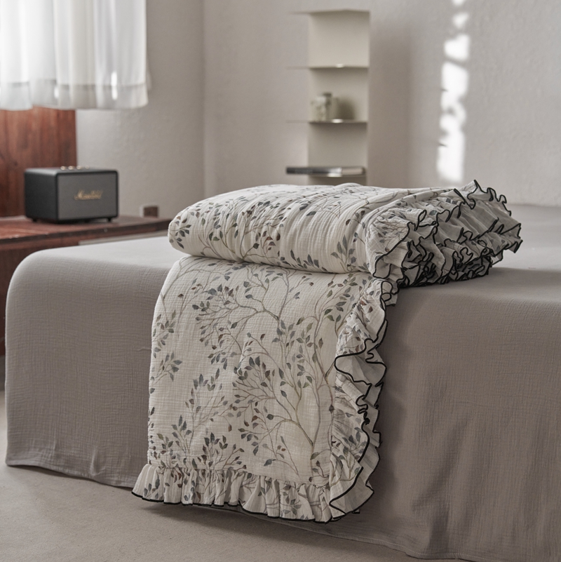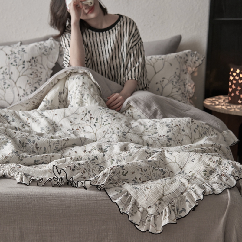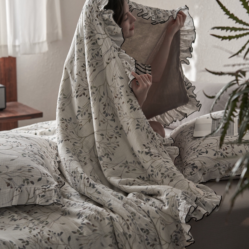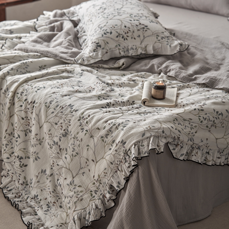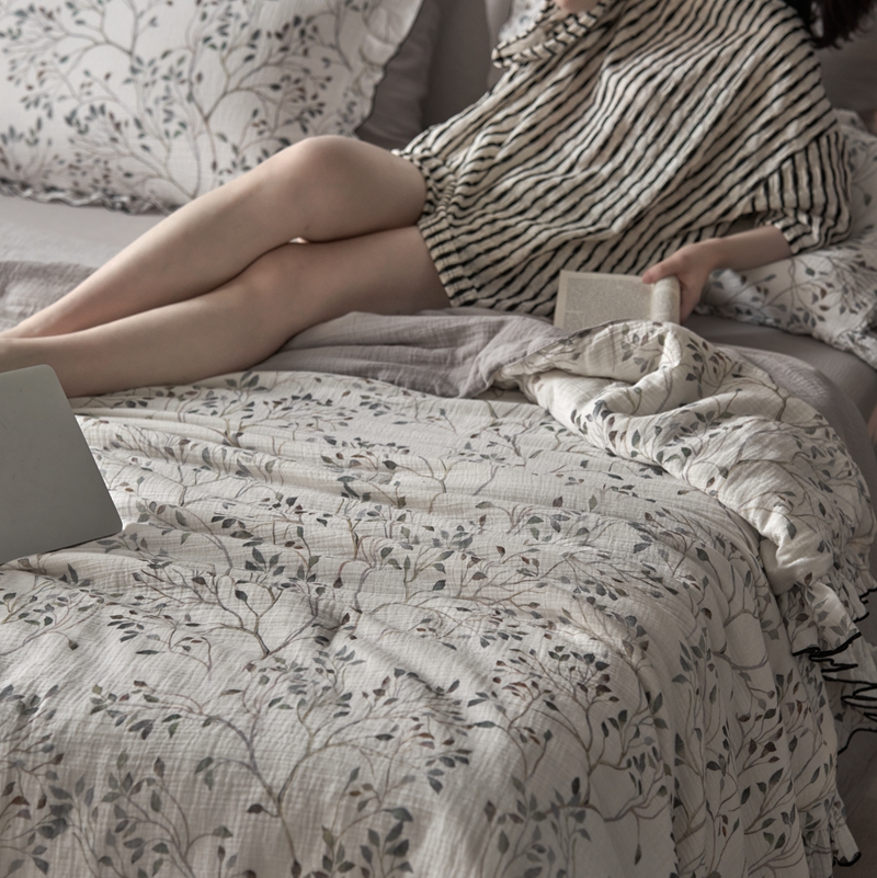 安莱生活2025新款A类全棉双层皱皱纱夏凉被 夏被 常青藤