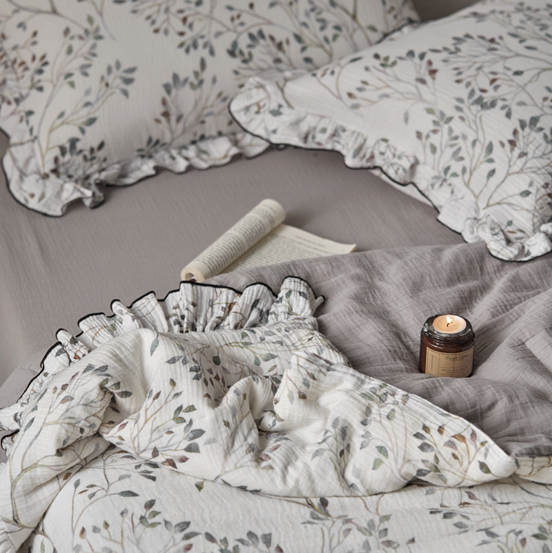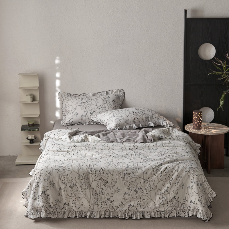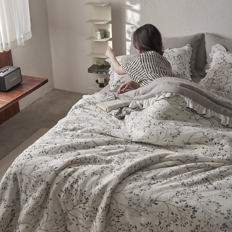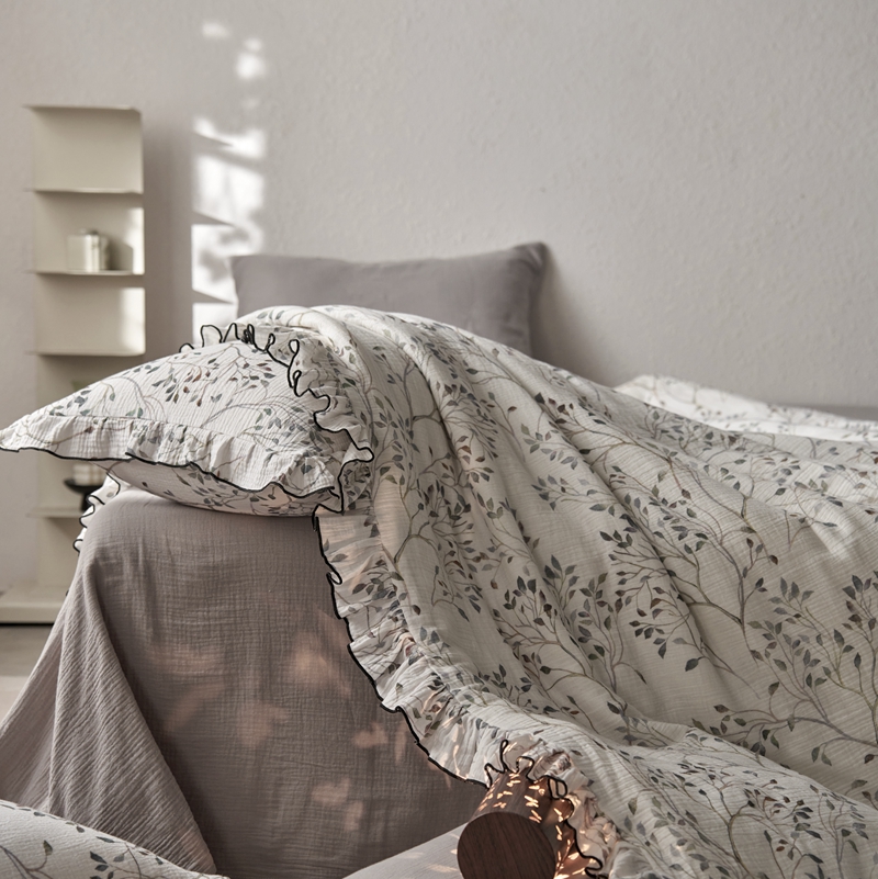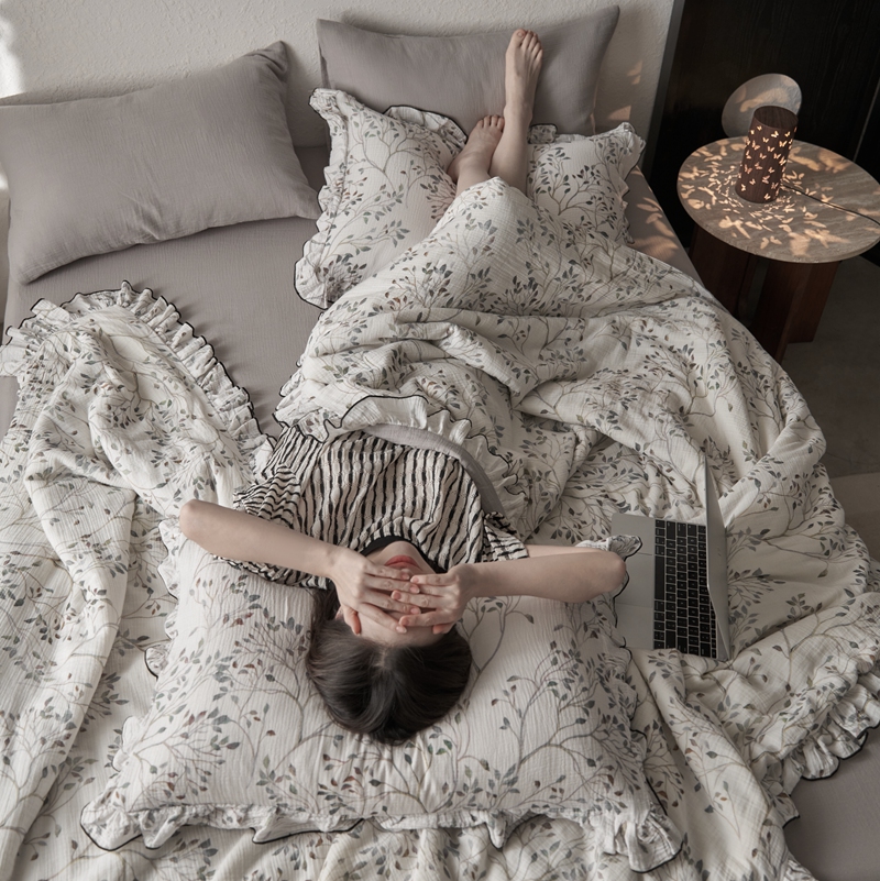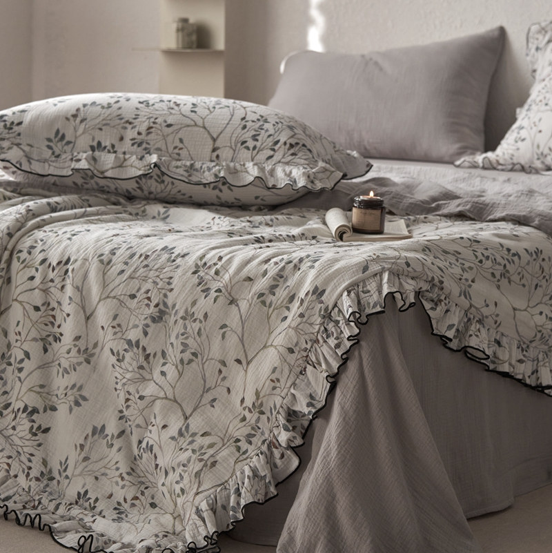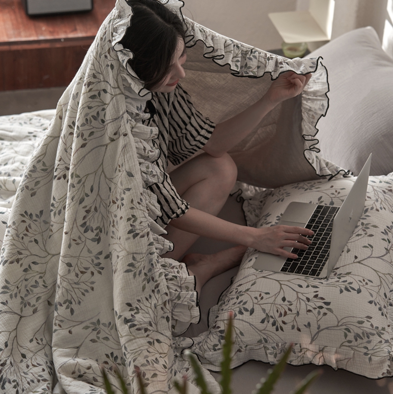 安莱生活2025新款A类全棉双层皱皱纱夏凉被 夏被 常青藤