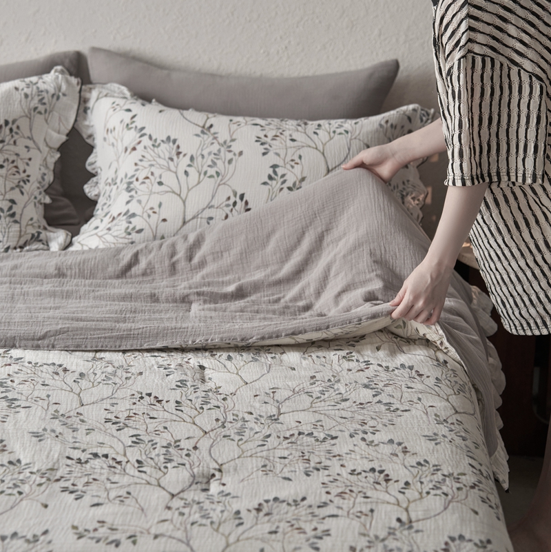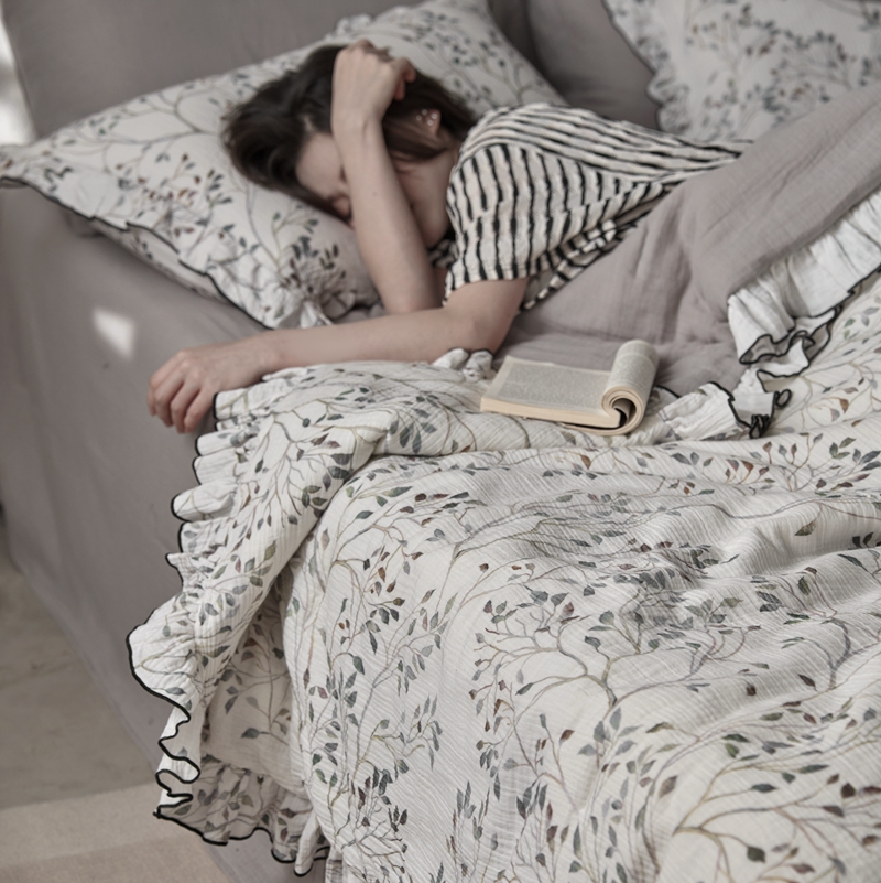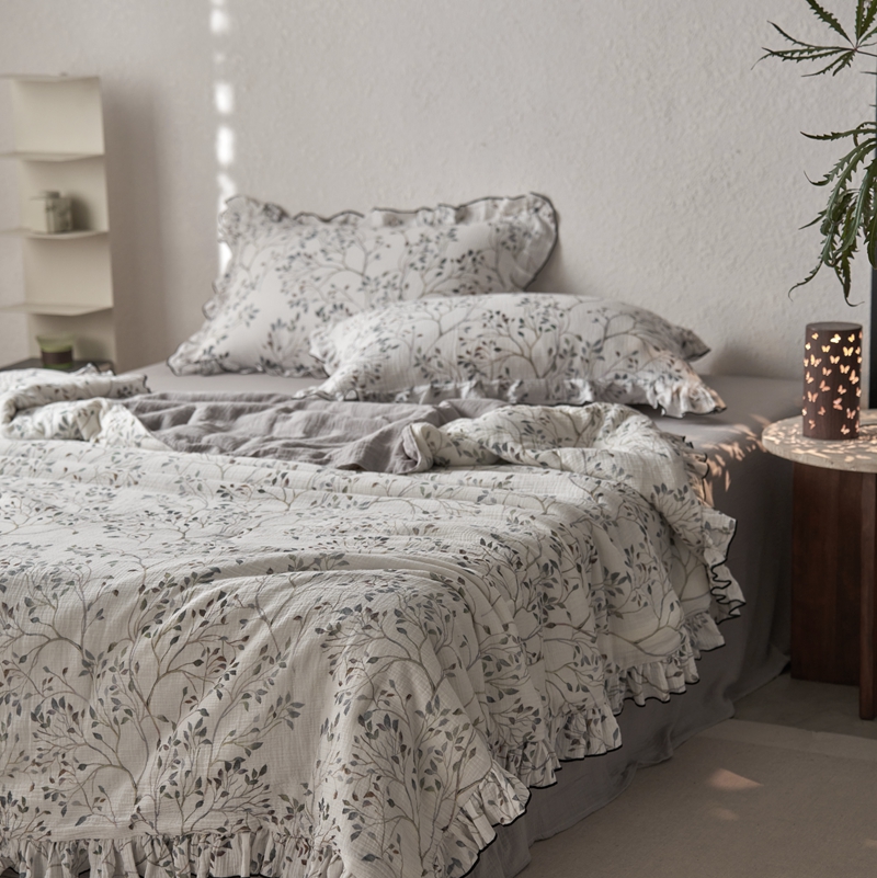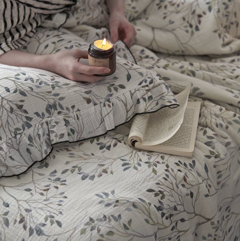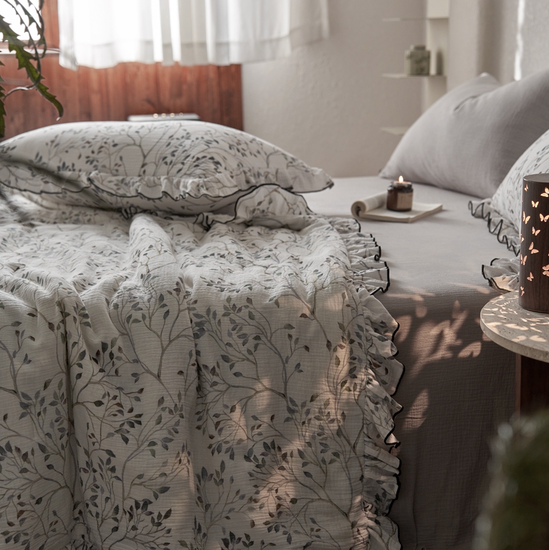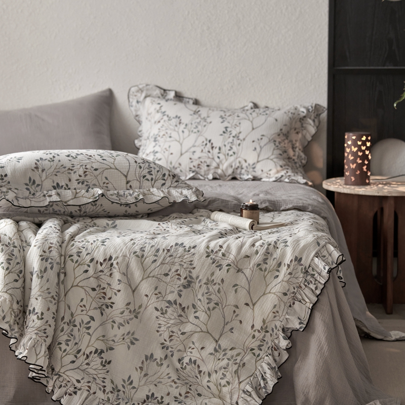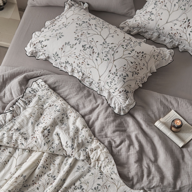 安莱生活2025新款A类全棉双层皱皱纱夏凉被 夏被 常青藤