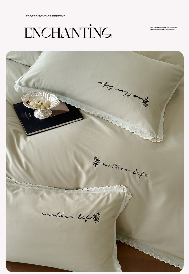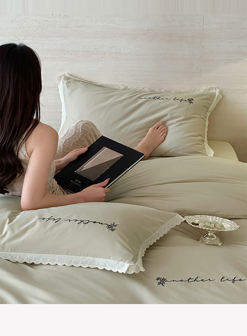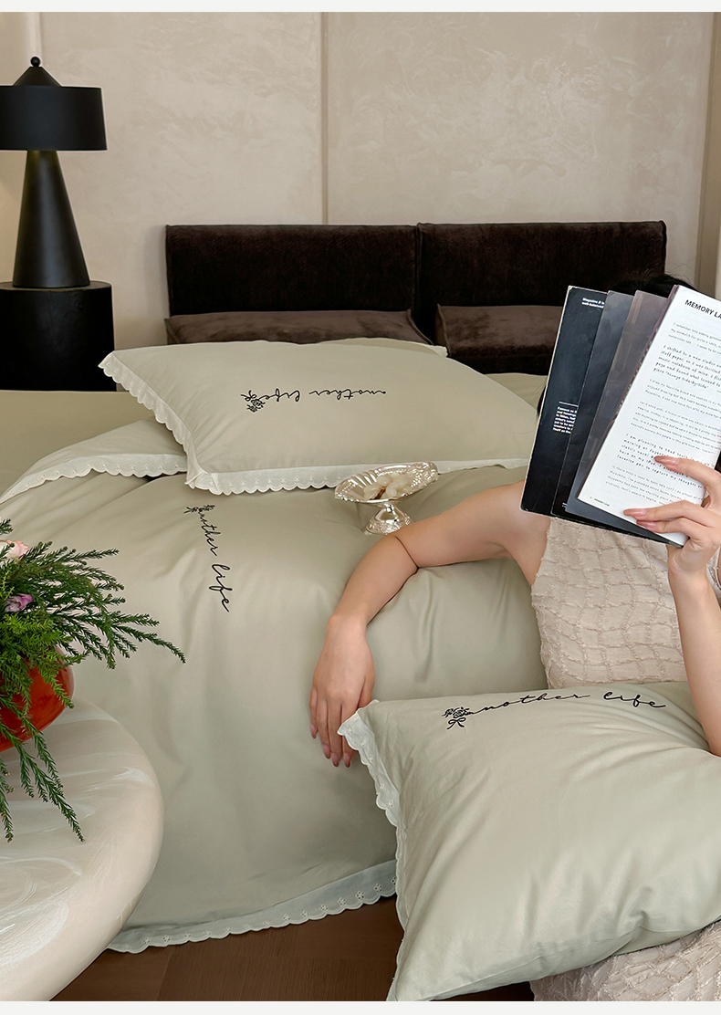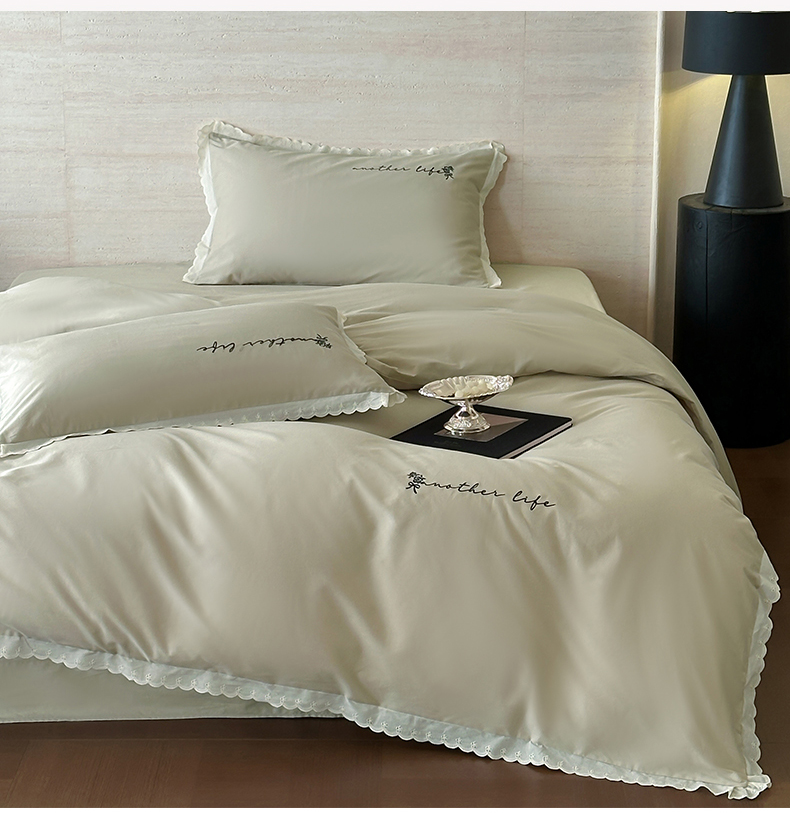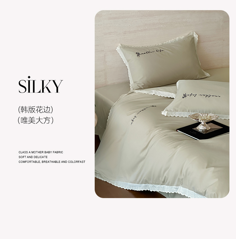 商品名称:名品优仓 2025新款纯棉水洗棉双层纱提花韩版花边四件套-约定 约定-夜绿
