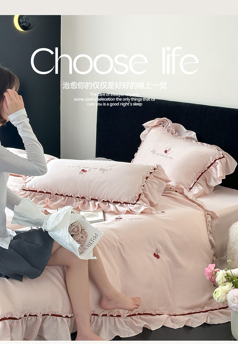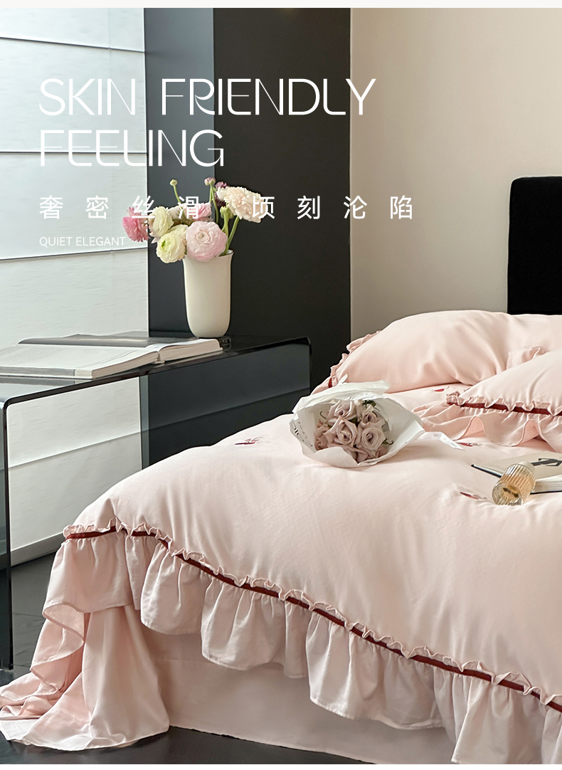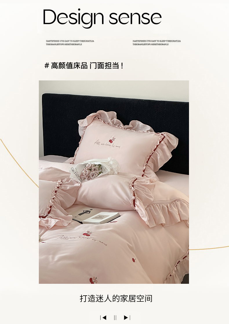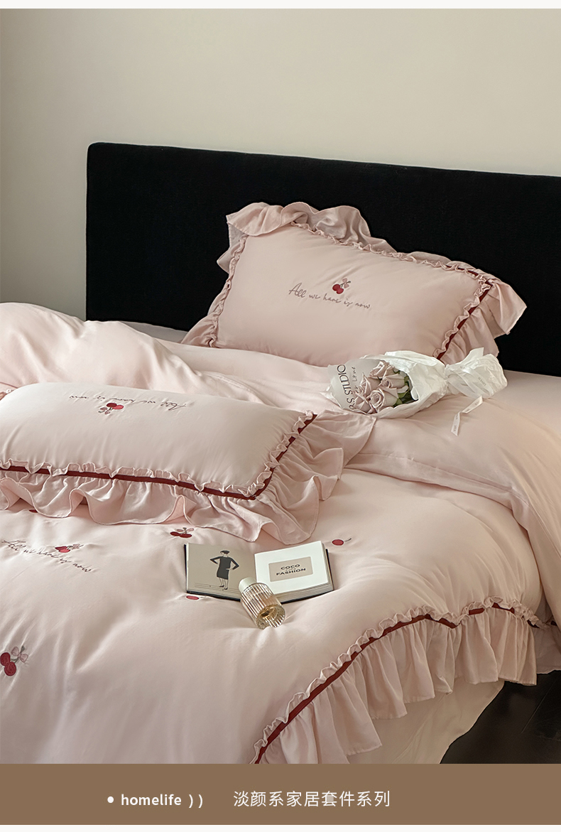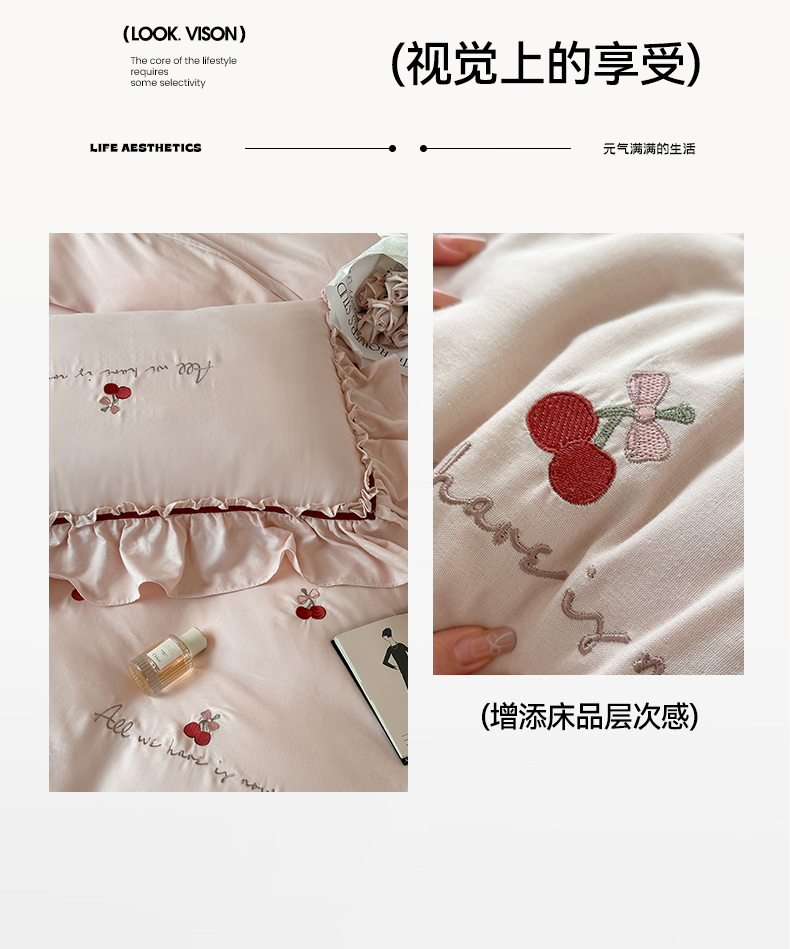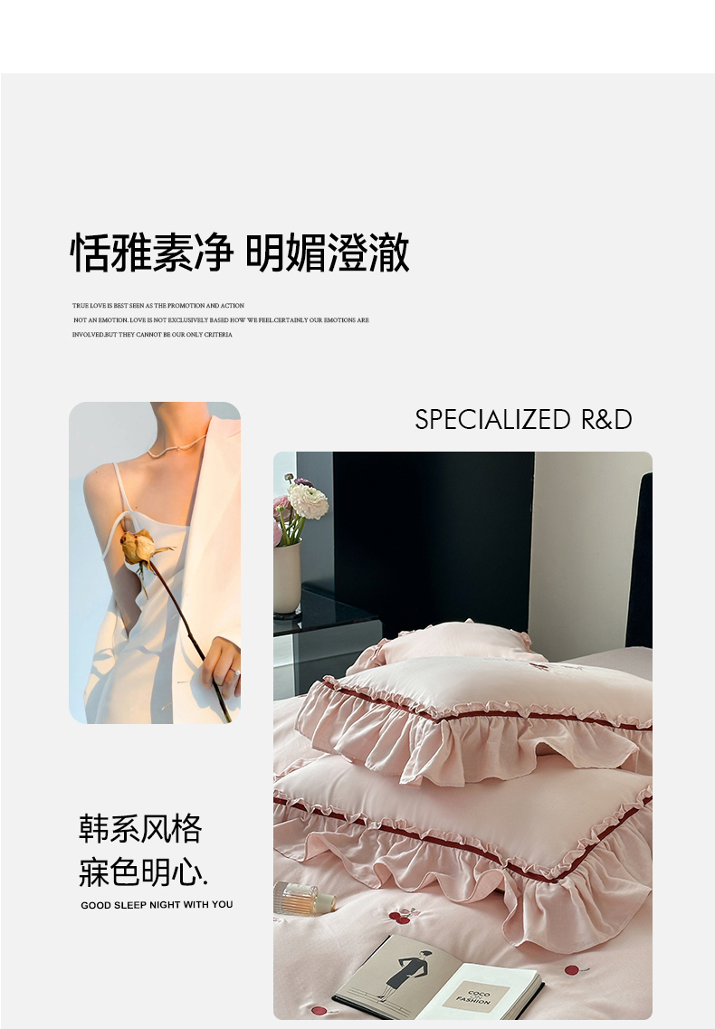 商品名称:名品优仓 2025新款纯棉水洗棉双层纱提花韩版花边四件套-颜可 颜可一爱坦粉