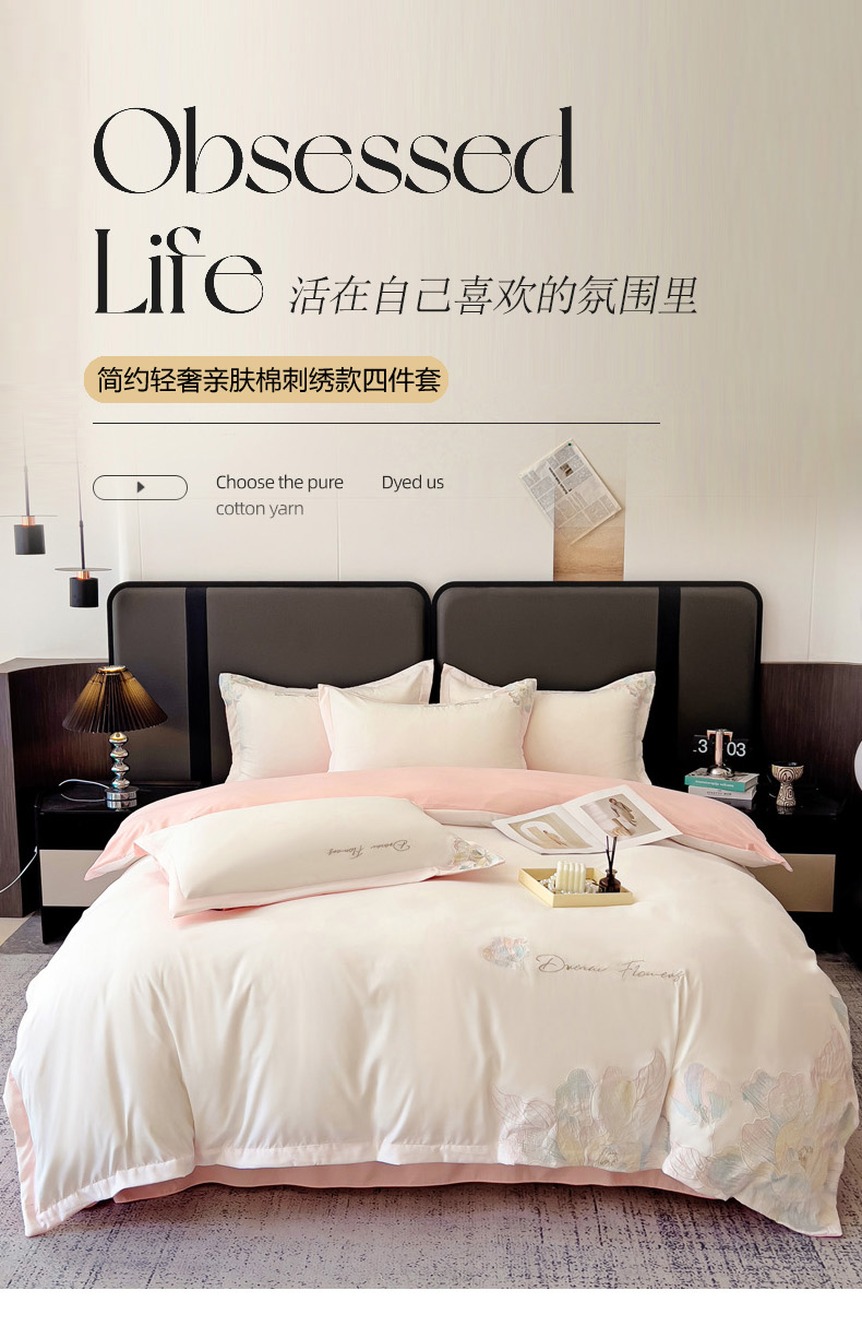 (总)梧桐家居 2025新款亲肤棉绣花四件套-米勒,米勒-灰紫,米勒-浅粉,米勒-浅黄,米勒-天空蓝