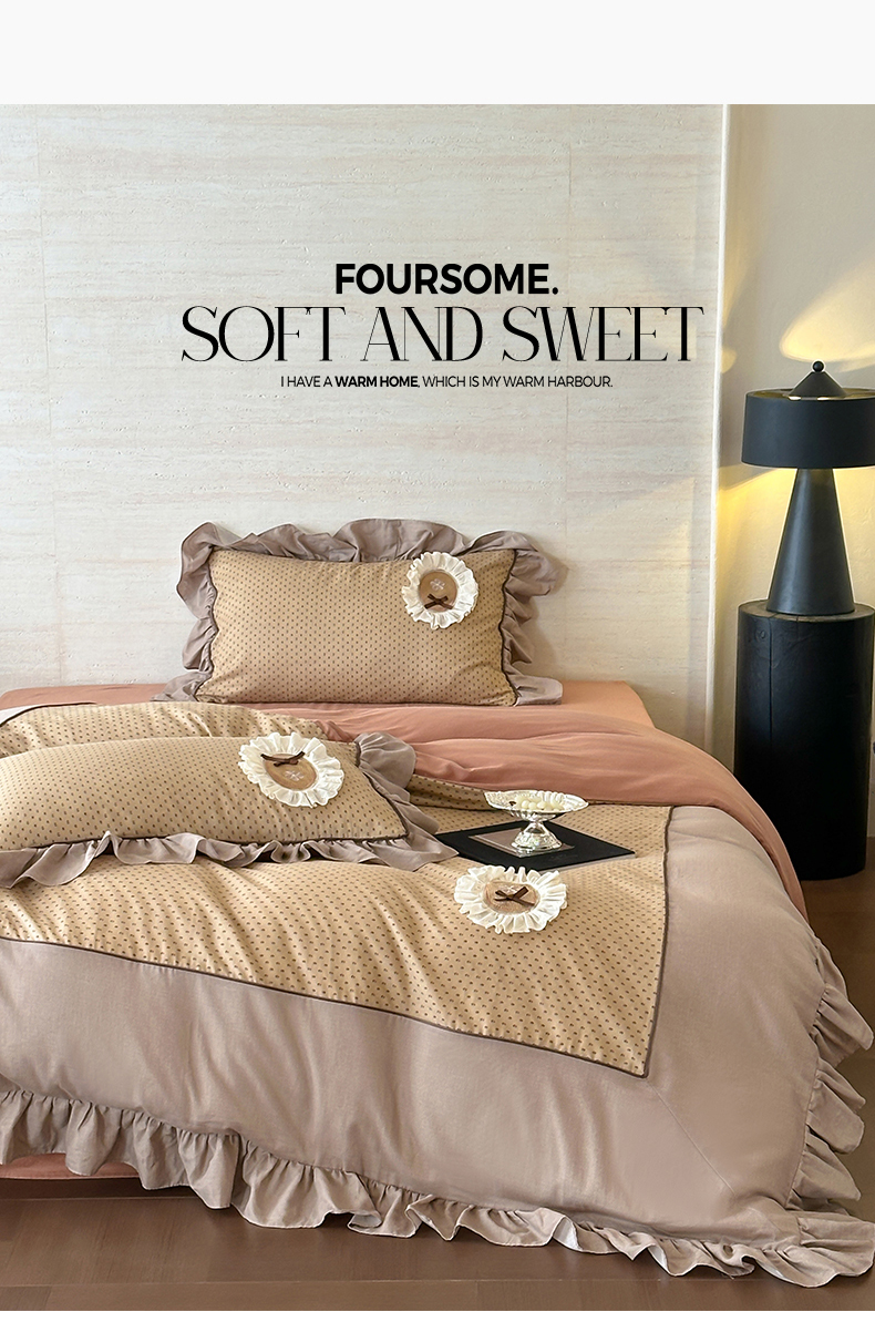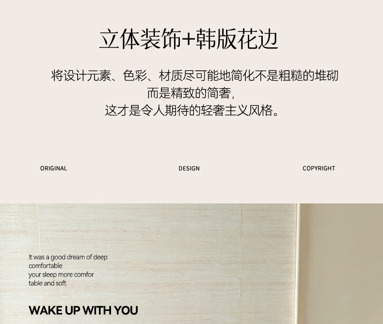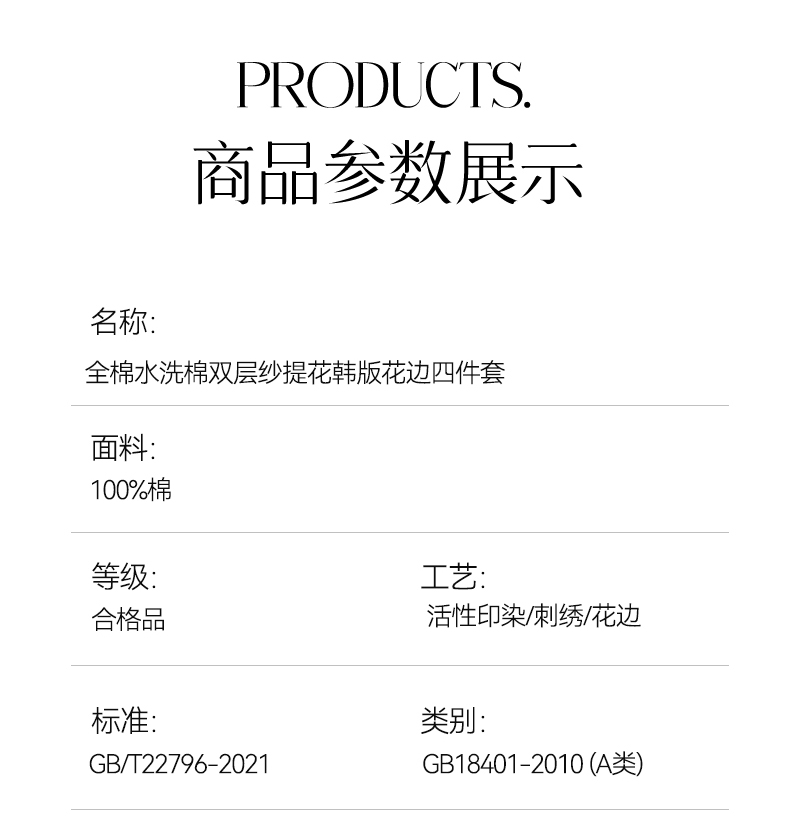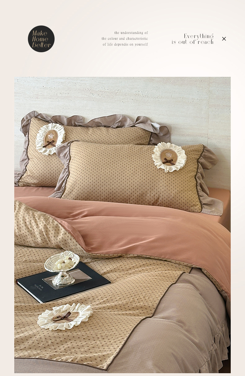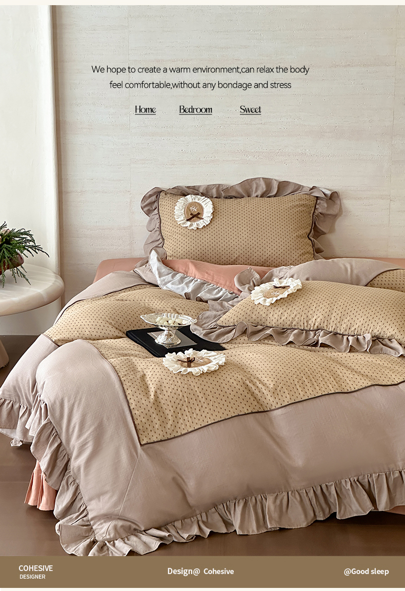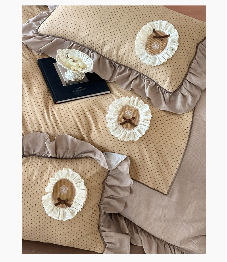商品名称:名品优仓 2025新款纯棉水洗棉双层纱提花韩版花边四件套-爱丽丝 爱丽丝一咖