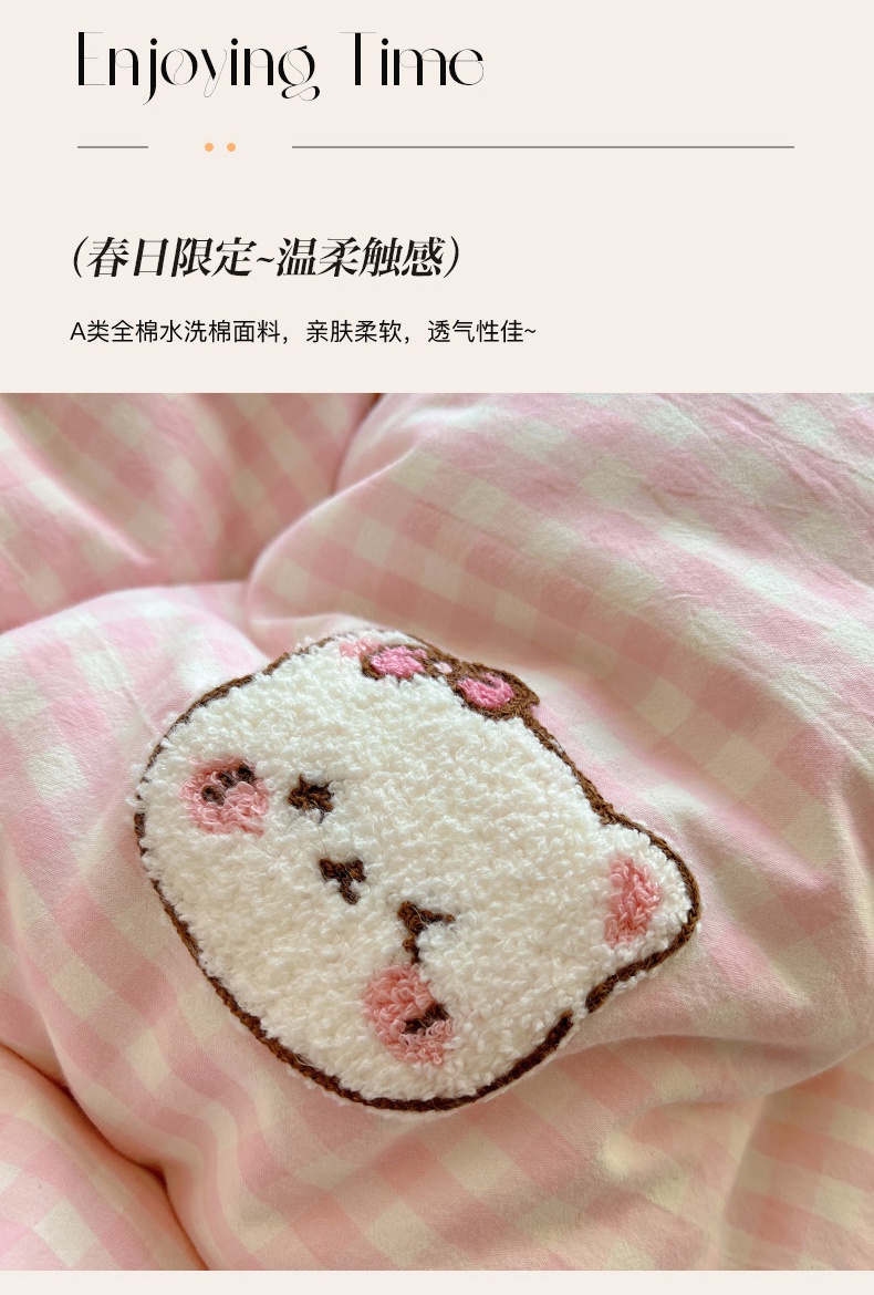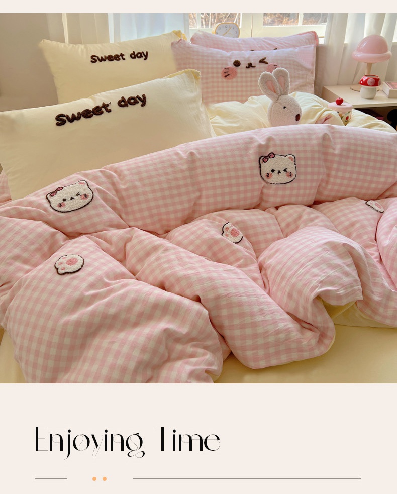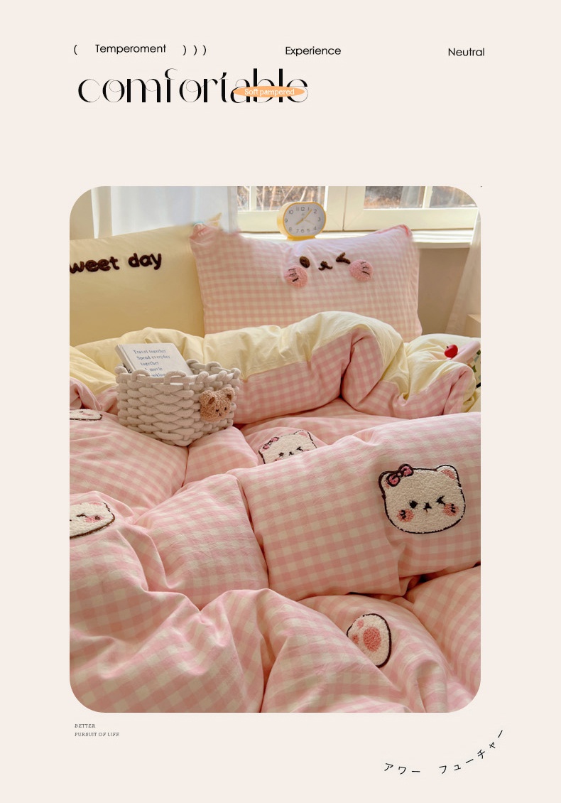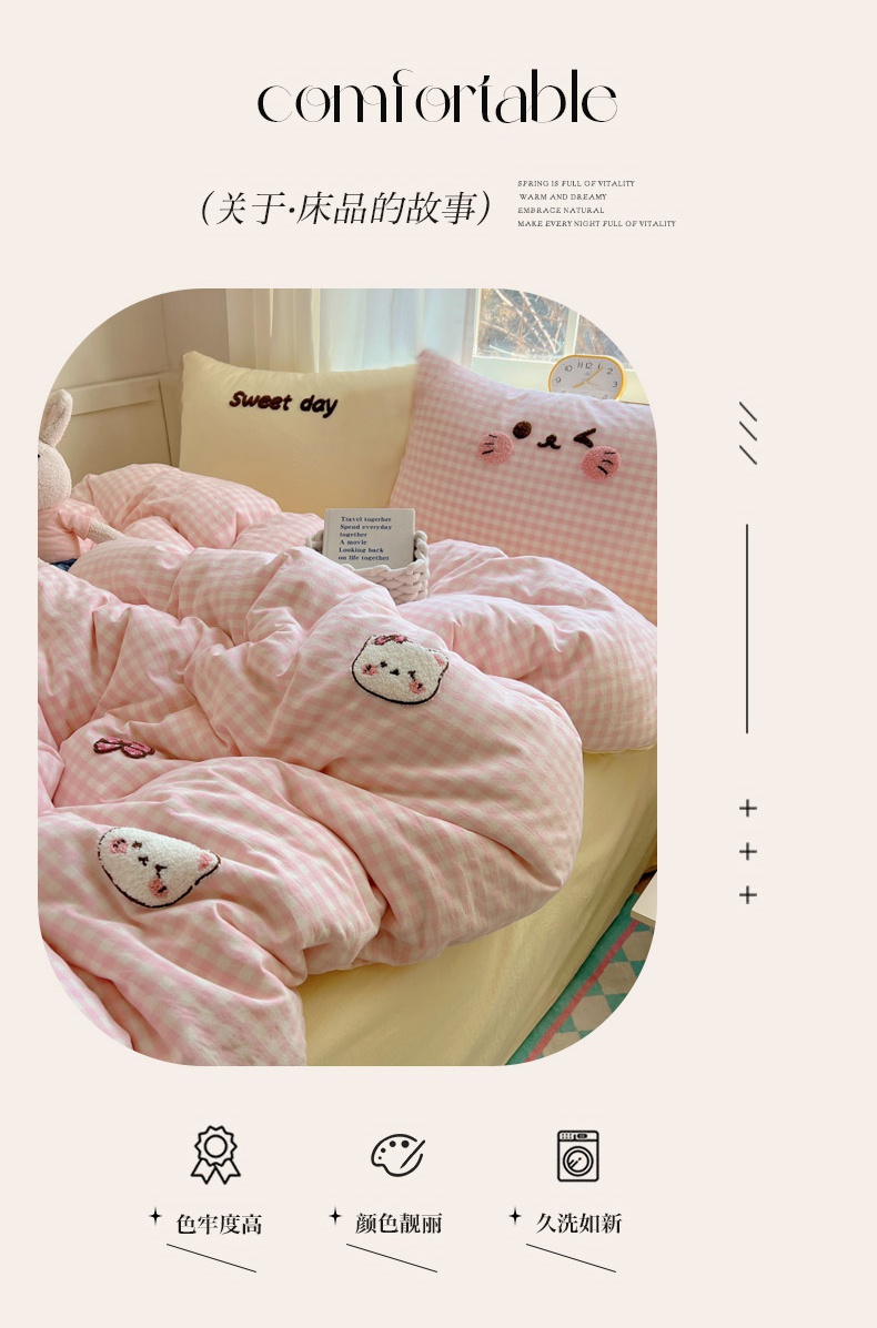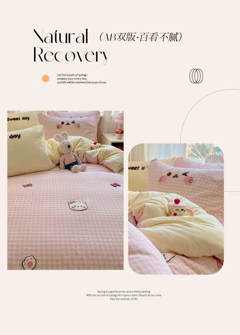当前位置: 91家纺网 > 商品网购 > 床品套件 > 四件套 > 全棉普通四件套 > 丽涵家纺 2025新款色织水洗棉毛巾绣四件套-甜心小猫系列 甜心小猫-粉黄-简单款