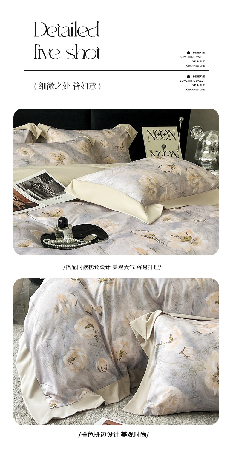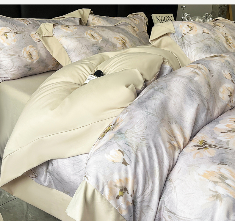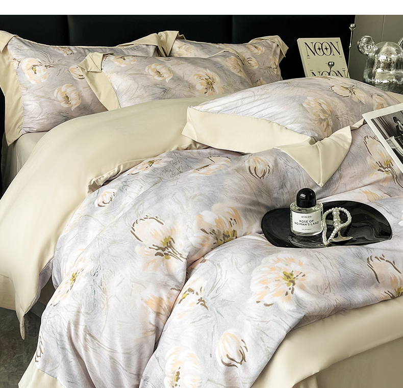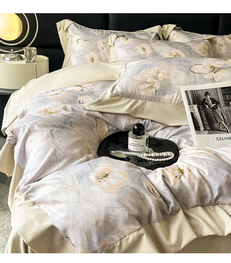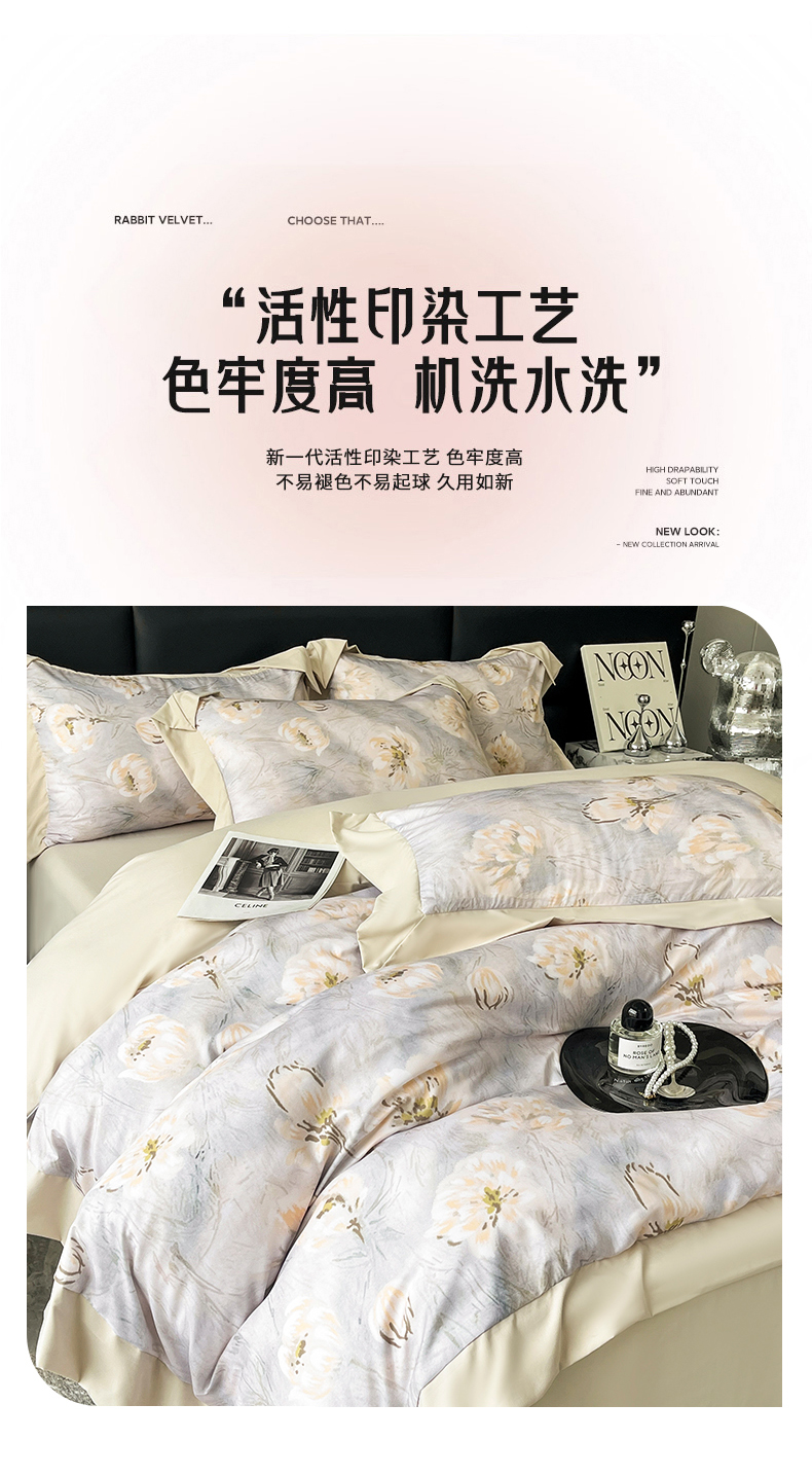 KA家纺 2025新款A类轻奢大拼角亲肤棉数码印花云朵棉四件套 手绘白兰