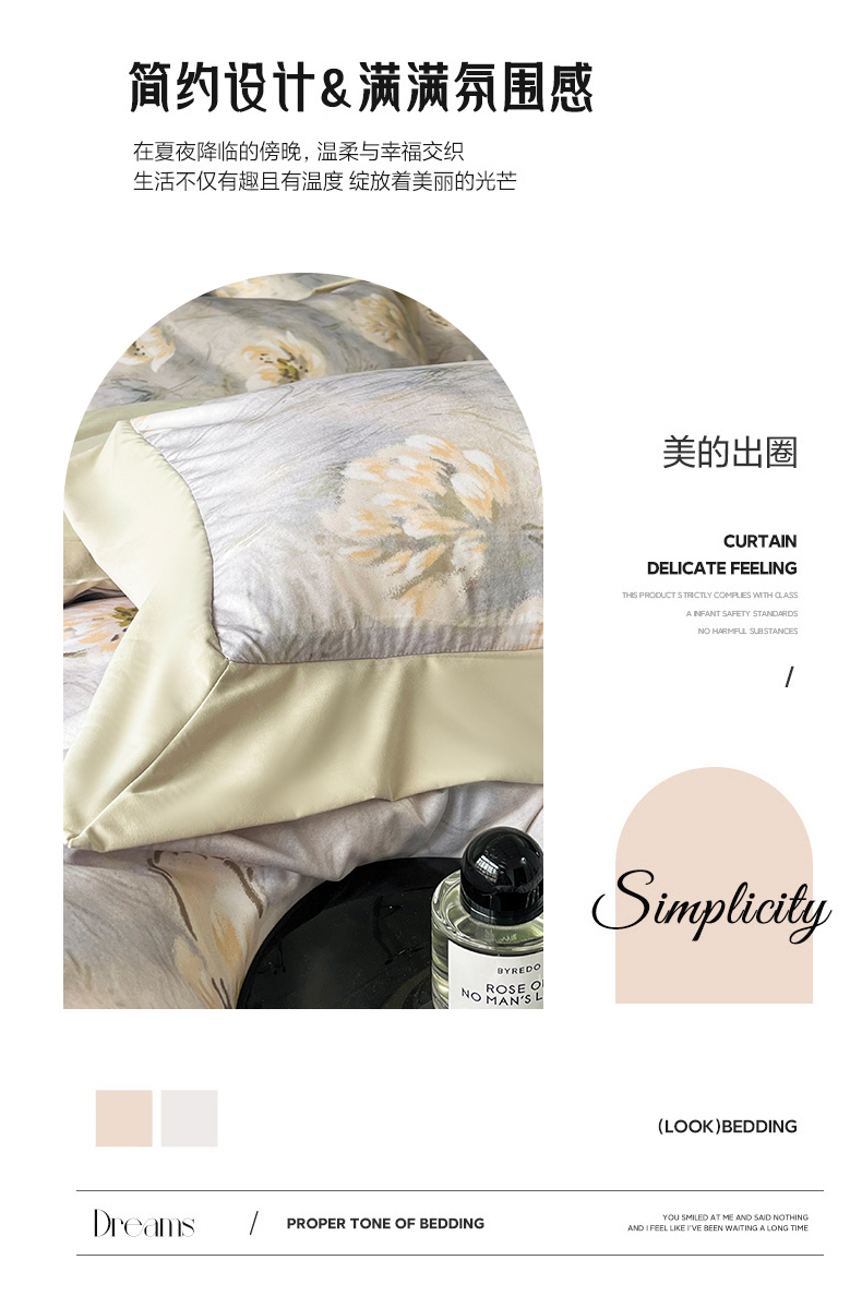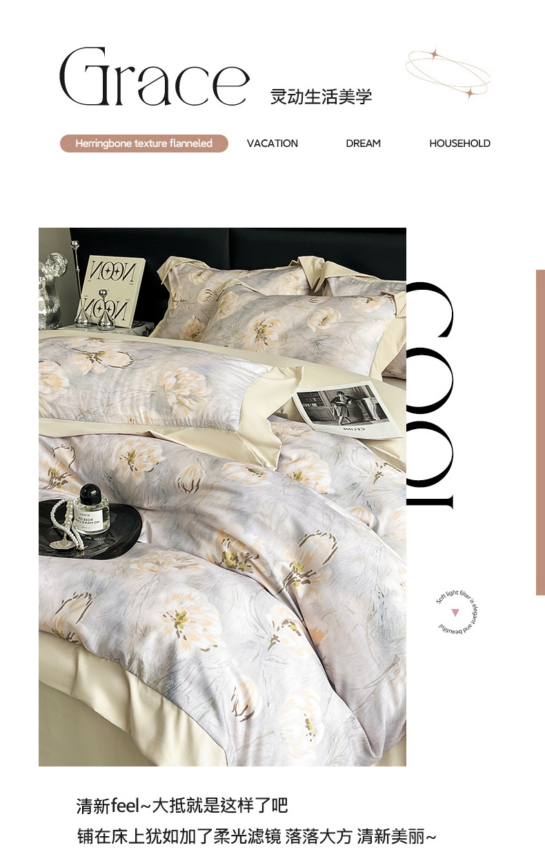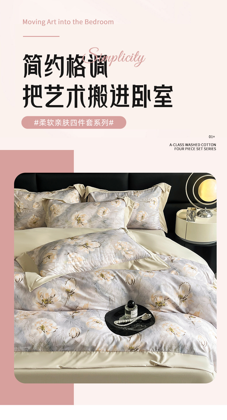 KA家纺 2025新款A类轻奢大拼角亲肤棉数码印花云朵棉四件套 手绘白兰