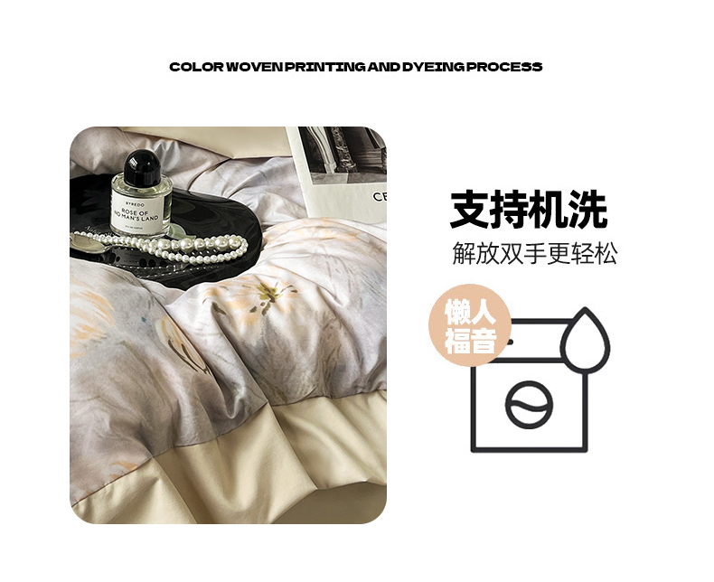 商品名称:KA家纺 2025新款A类轻奢大拼角亲肤棉数码印花云朵棉四件套 手绘白兰