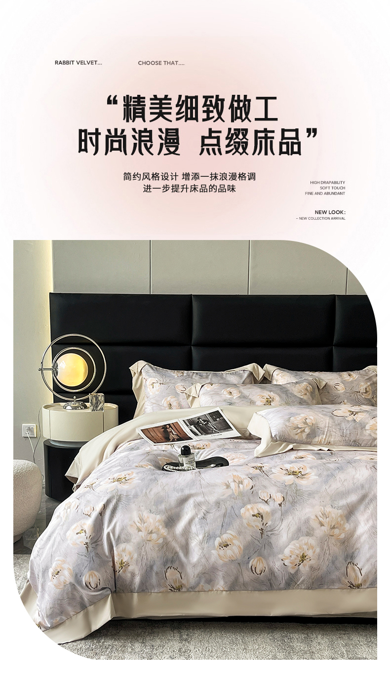 (总)KA家纺 2025新款秋冬兔毛边工艺款兔毛牛奶绒四件套,豹闪闪,蝶飞飞,红彤彤,花满满,洛可可,情浓浓,心乱乱
