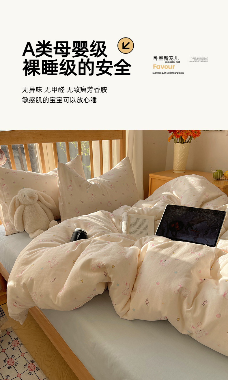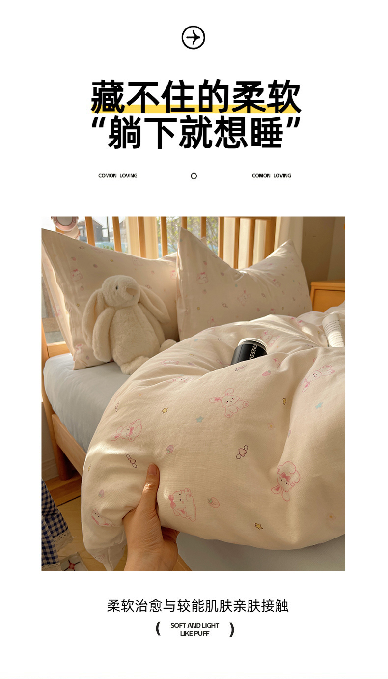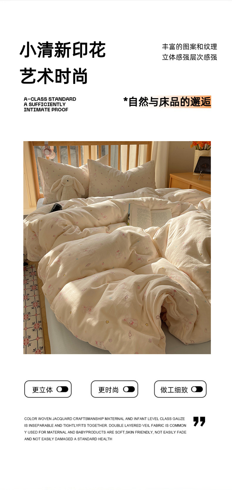 当前位置: 91家纺网 > 商品网购 > 床品套件 > 四件套 > 双层纱四件套 > 蜜宿 2025新款卡通全棉A类双层纱四件套 月光兔兔
