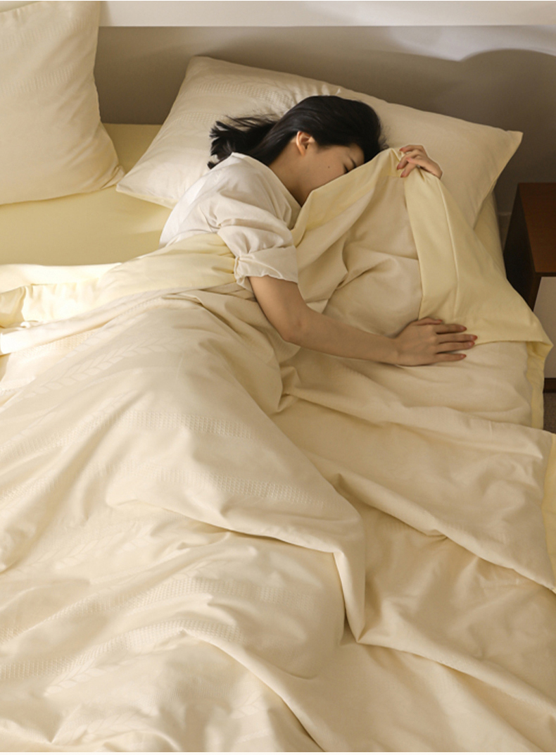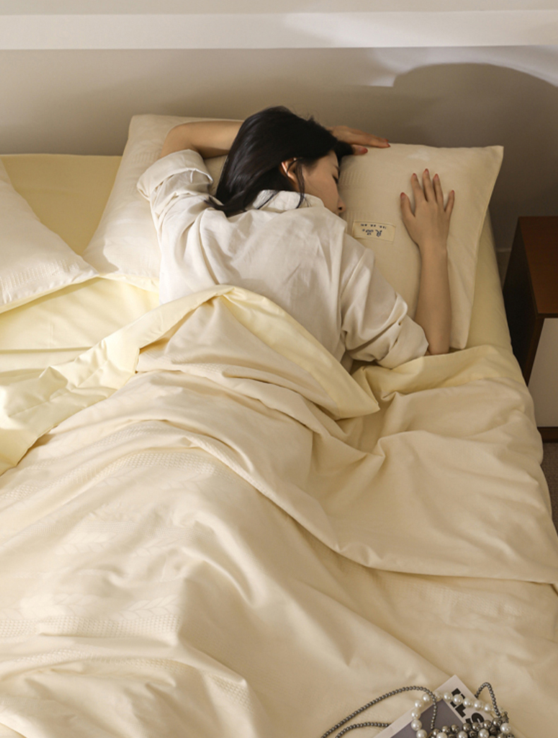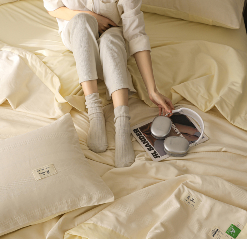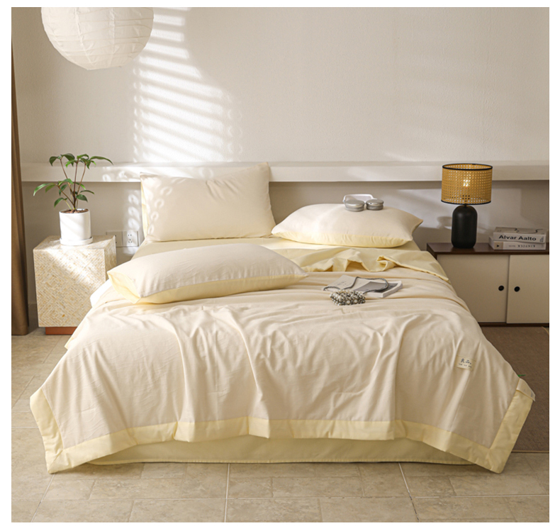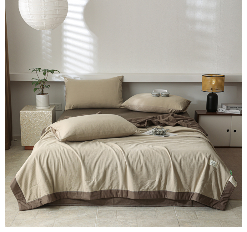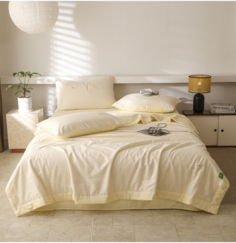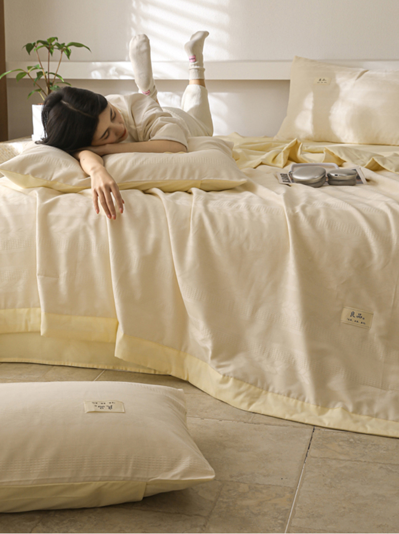 (总)眠博士 2025新款A类全棉波纹纱提花大豆纤维追忆包边夏被四件套