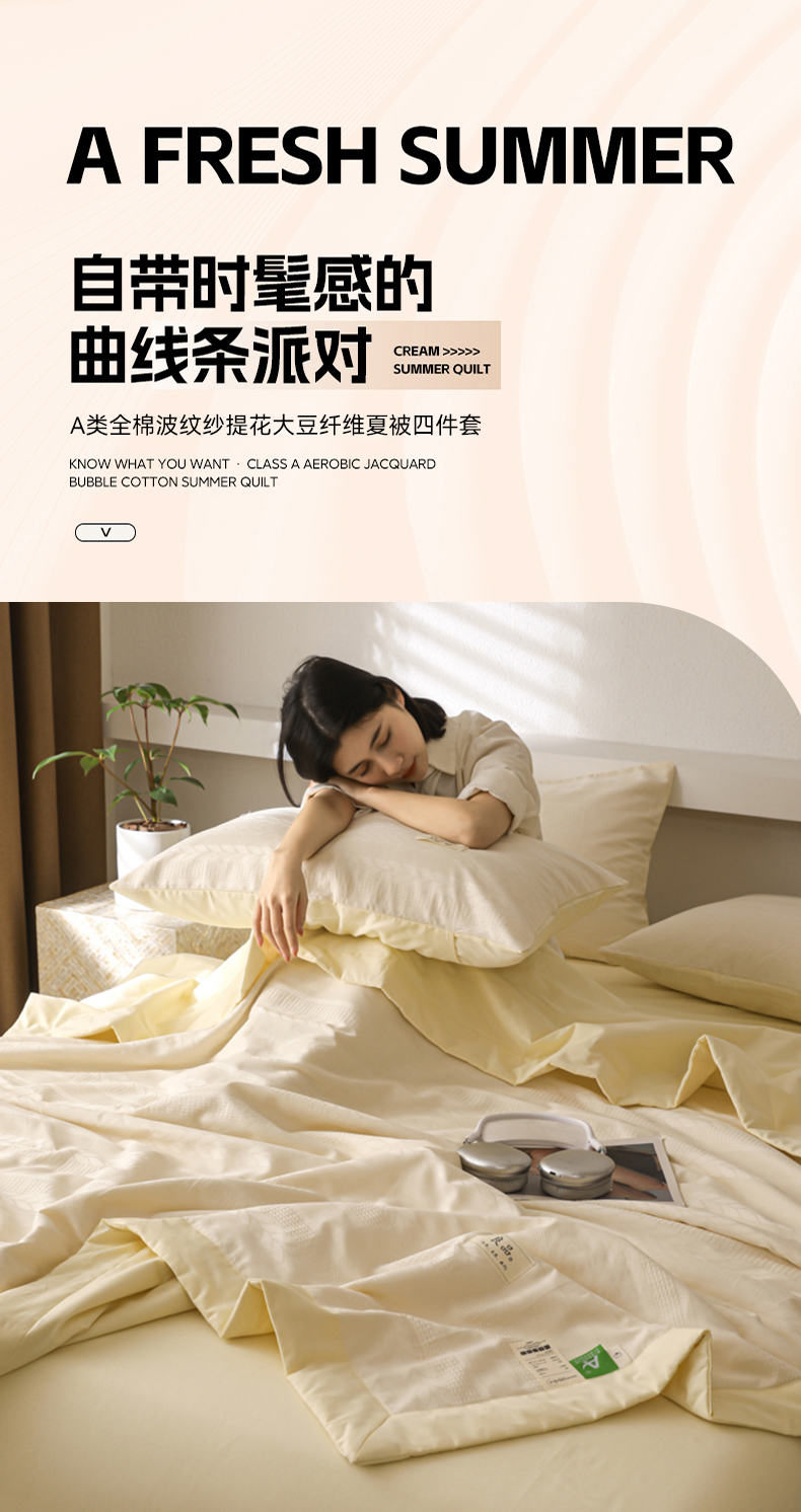 商品名称:(总)眠博士 2025新款A类全棉波纹纱提花大豆纤维追忆包边夏被四件套