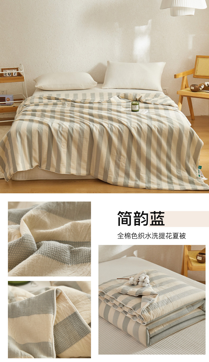 被子 > 夏被 > 良品汇馆 2025【水洗大豆宽条纹夏被】日式无印A类水洗提花大豆夏被良品宽条纹夏季被子双人全棉空调被