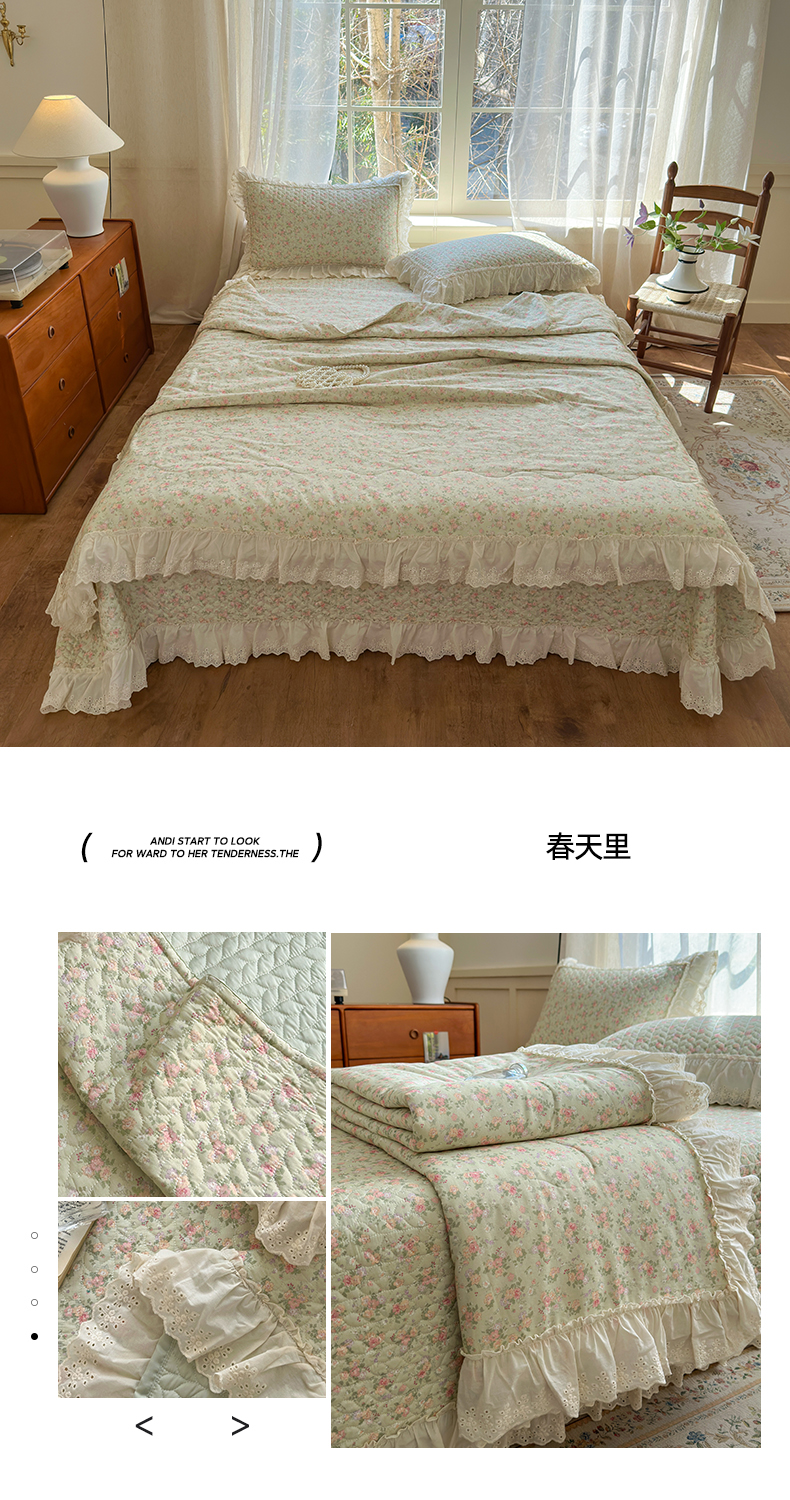 淑女公社家纺 2025春夏新款法式纯棉双层纱夏被床盖四件套 春天里
