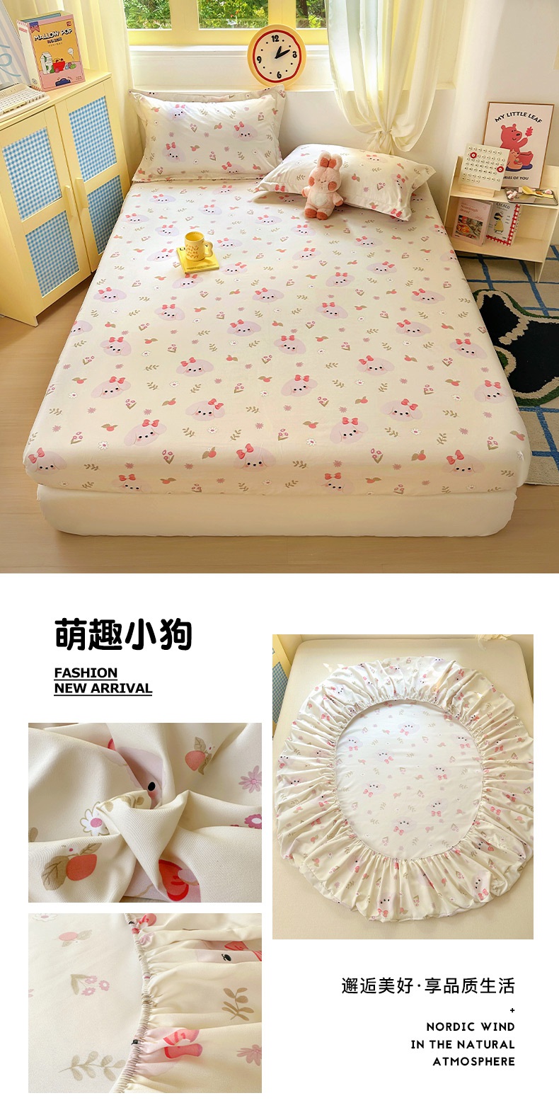 商品名称:十一家居 2025新款小清新印花款高克重加厚升级款云朵棉水洗棉床笠 萌趣小狗