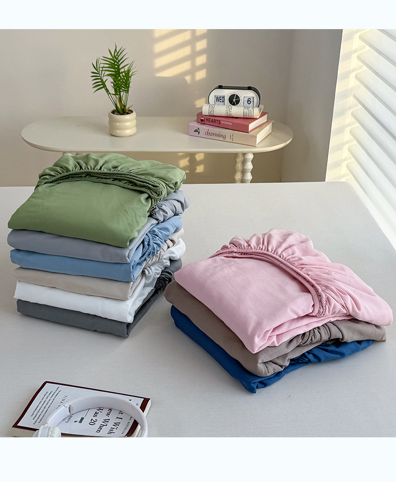 (总)十一家居 2025新款ins纯色系列亲肤水洗棉床笠,浅蓝,本白,茶咖,卡其,暖灰,深蓝,松绿,杏粉,烟灰,组合图