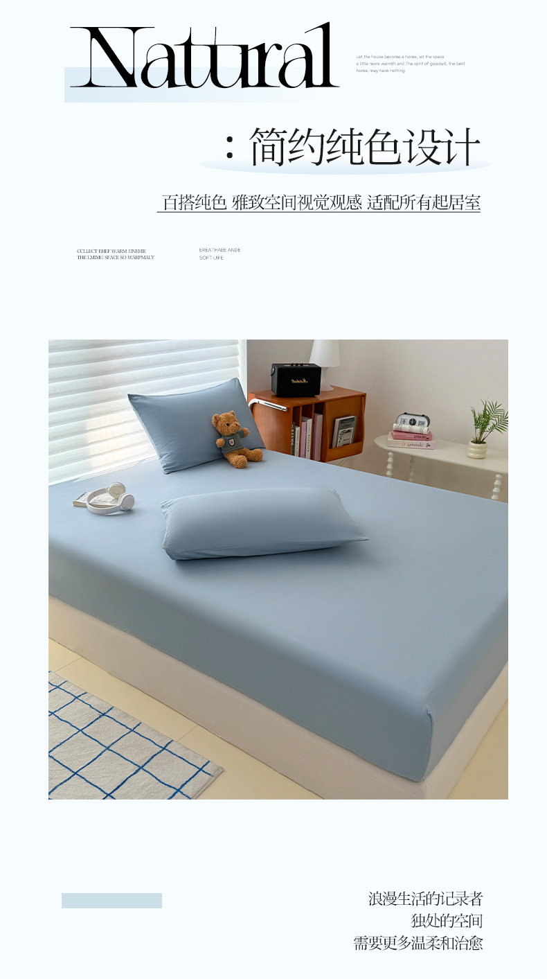 商品名称:十一家居 2025新款ins纯色系列亲肤水洗棉床笠 浅蓝