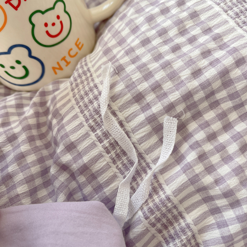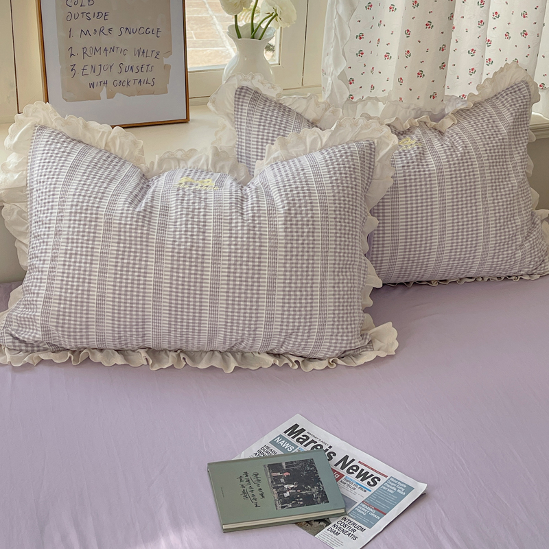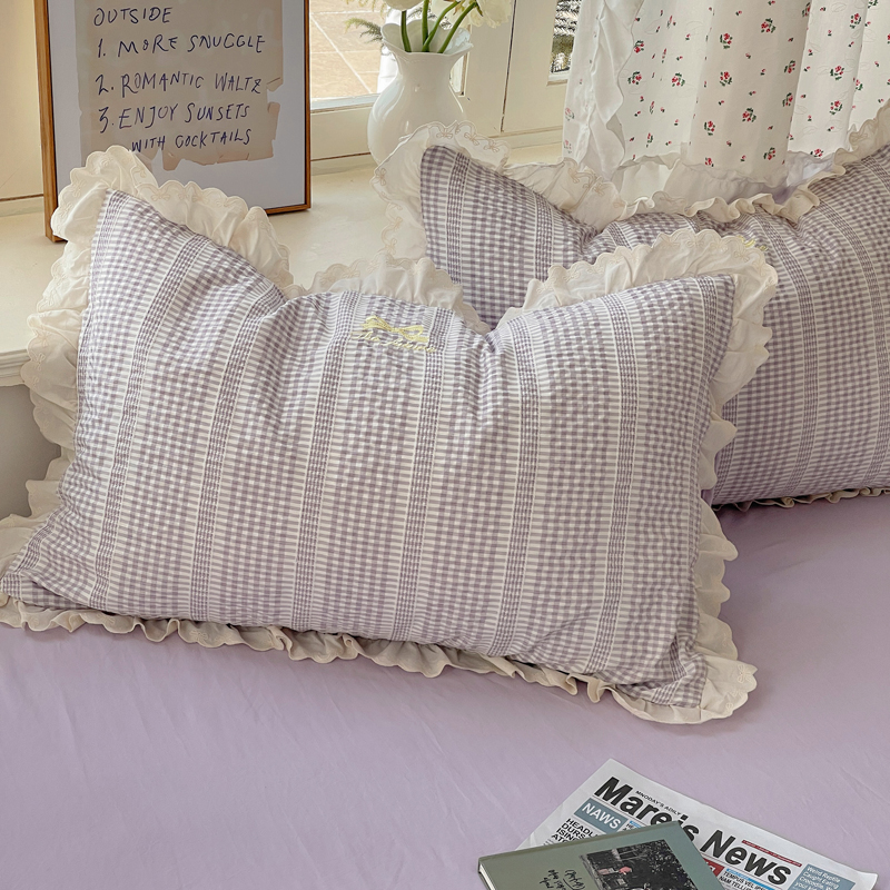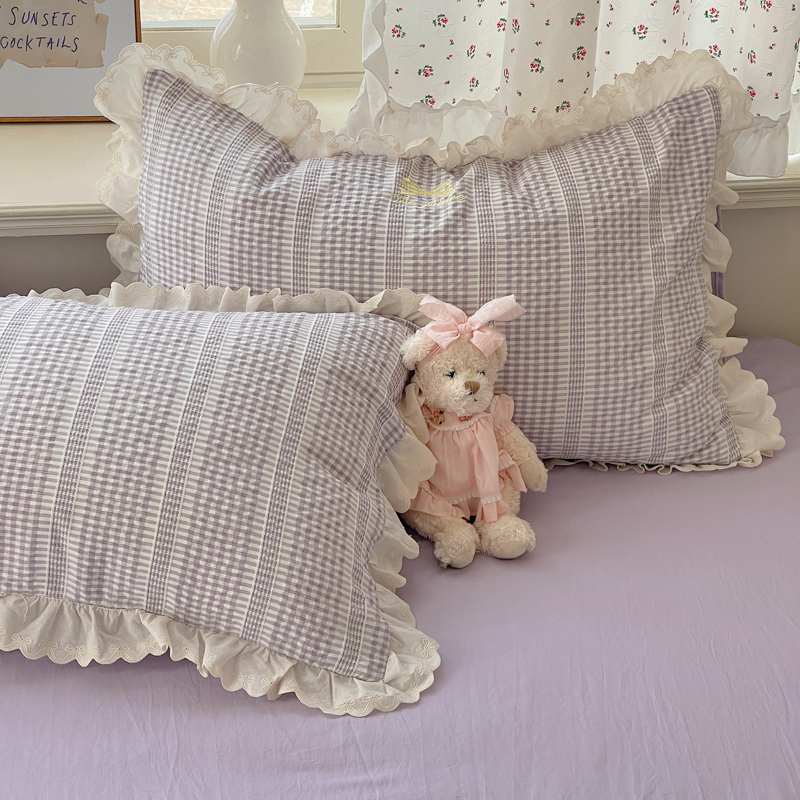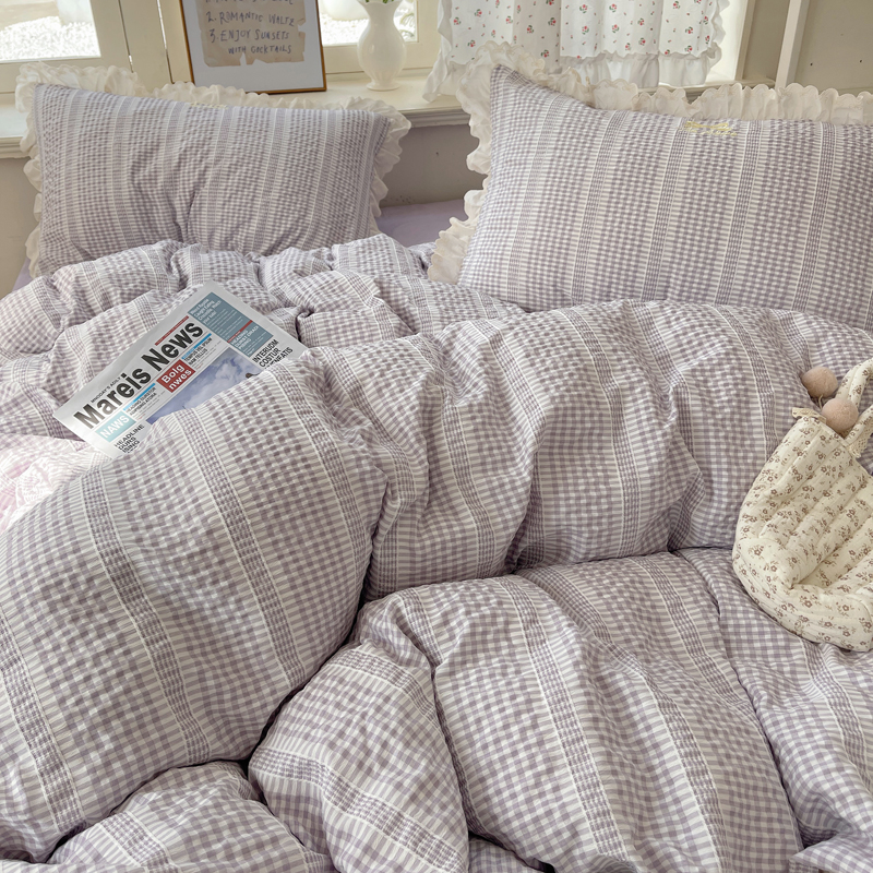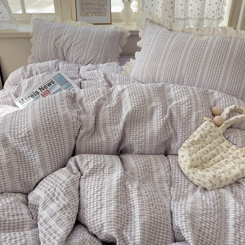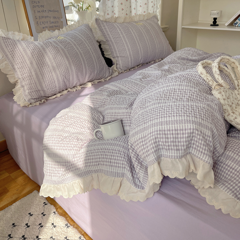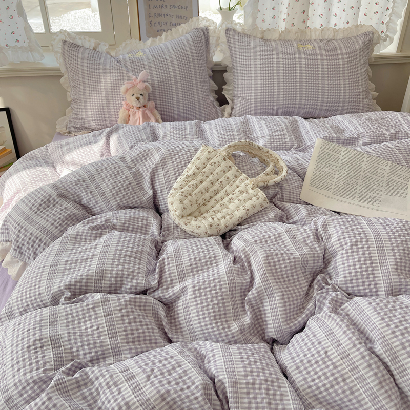商品名称:轻奢坊 2025新款色织提花格子水洗棉仙仙花边安妮四件套 花边安妮-紫