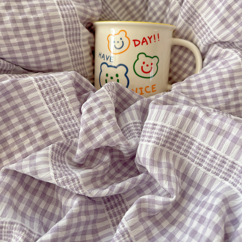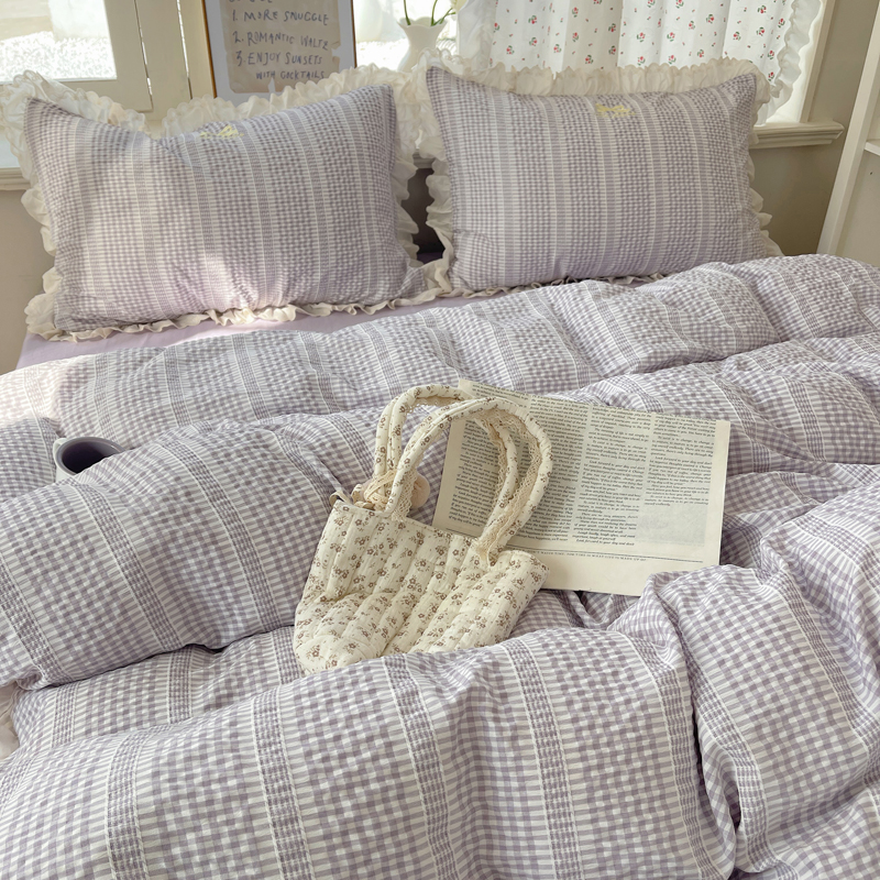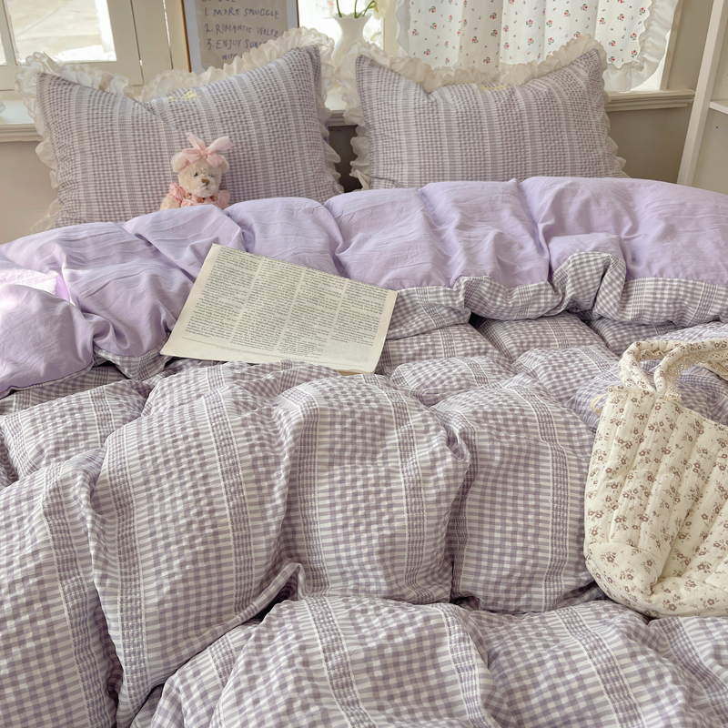 轻奢坊 2025新款色织提花格子水洗棉仙仙花边安妮四件套 花边安妮-紫