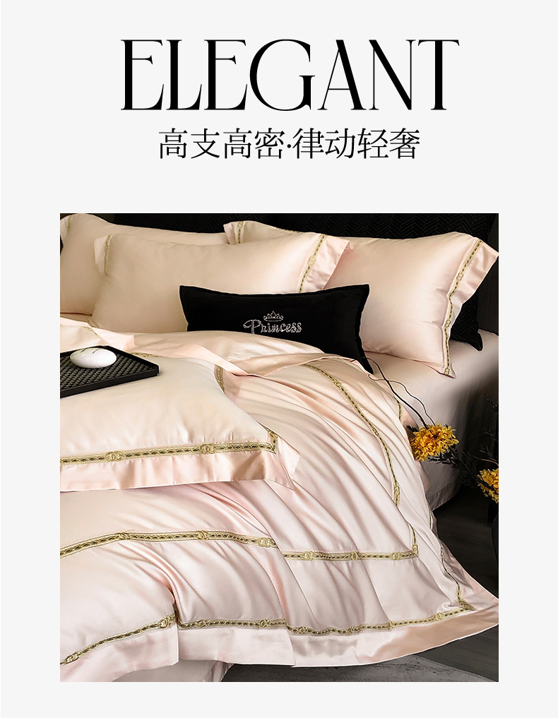 商品名称:2025新款全棉长绒棉刺绣四件套-慕研 慕研-粉玉